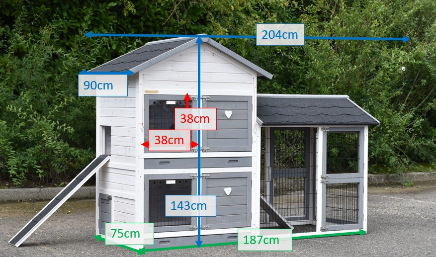 Les dimensions de ce bel abri pour animaux sont de 204x90x143 cm (dimensions extérieures maximales).