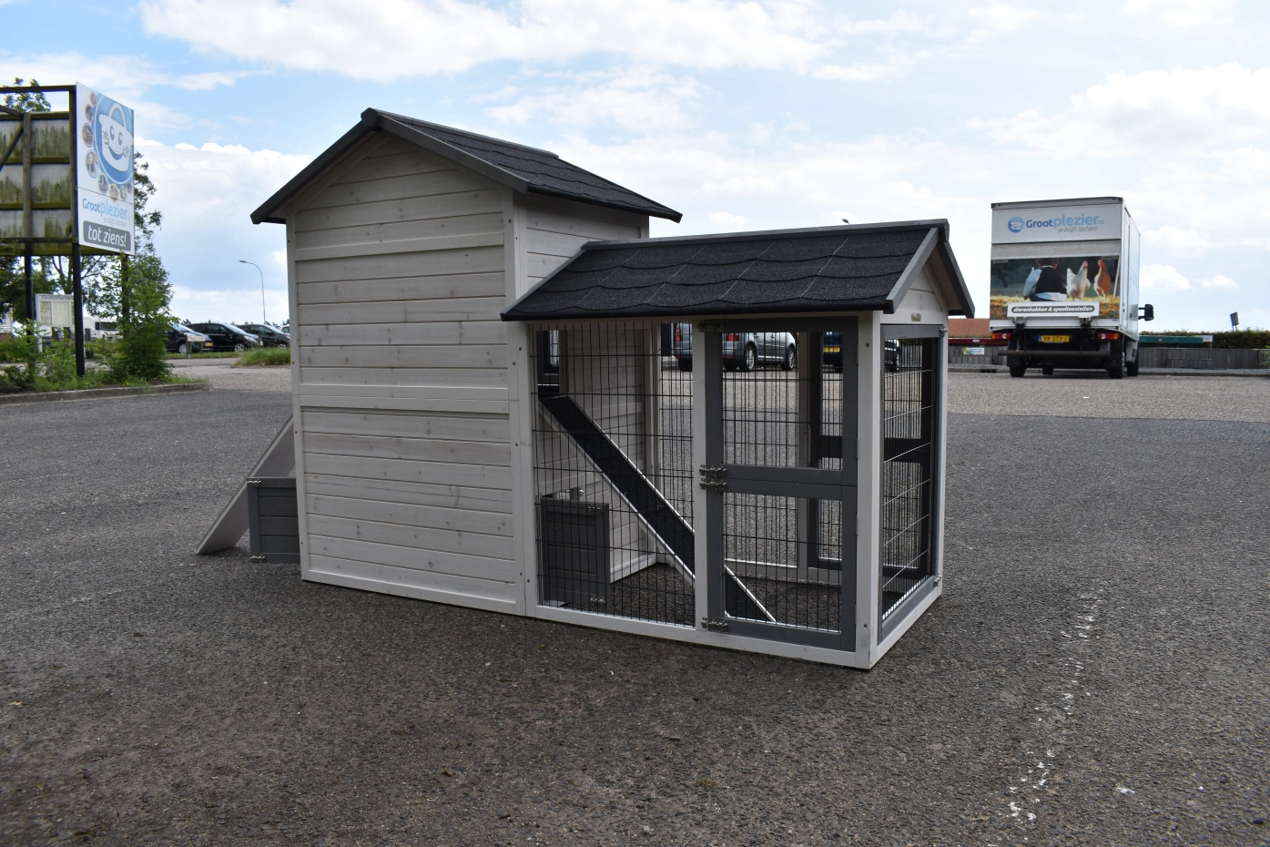 Poulailler Double Medium Blanc-Gris