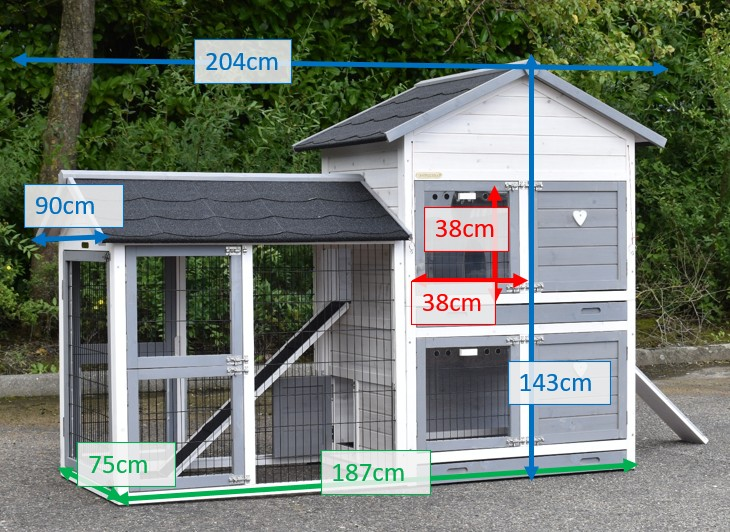 Les dimensions de ce bel abri pour animaux sont de 204x90x143 cm (dimensions extérieures maximales).