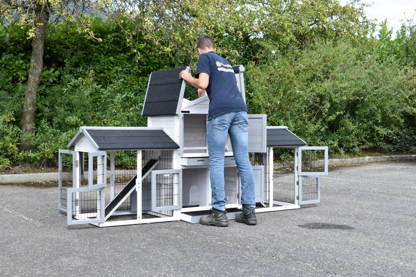 - Le clapier / poulailler est livré avec une instruction de montage simple