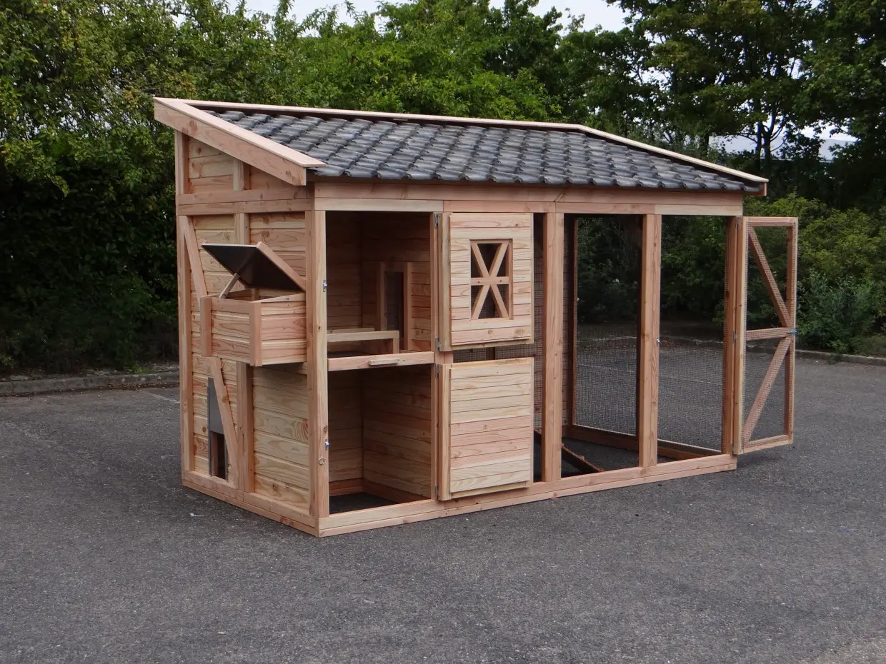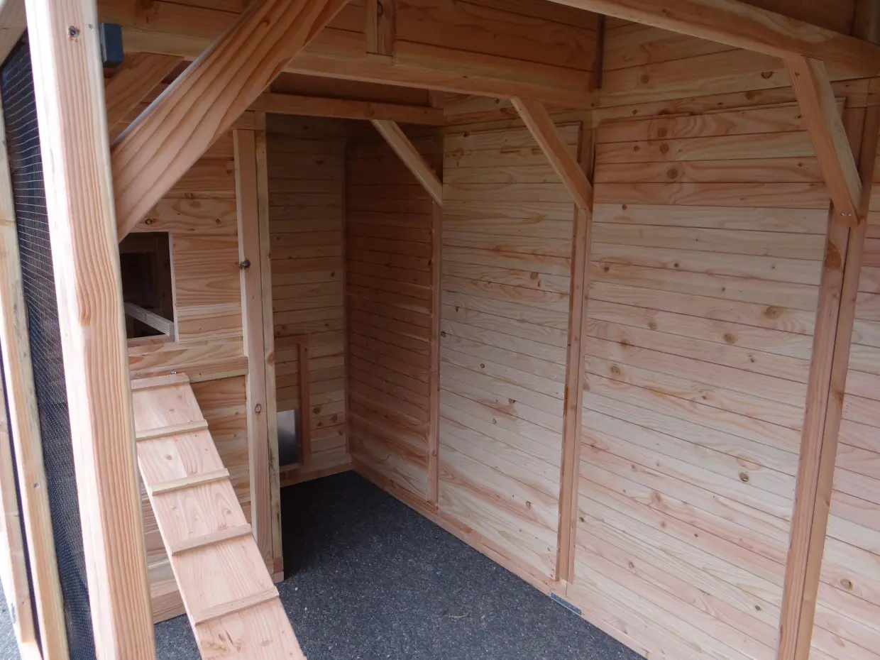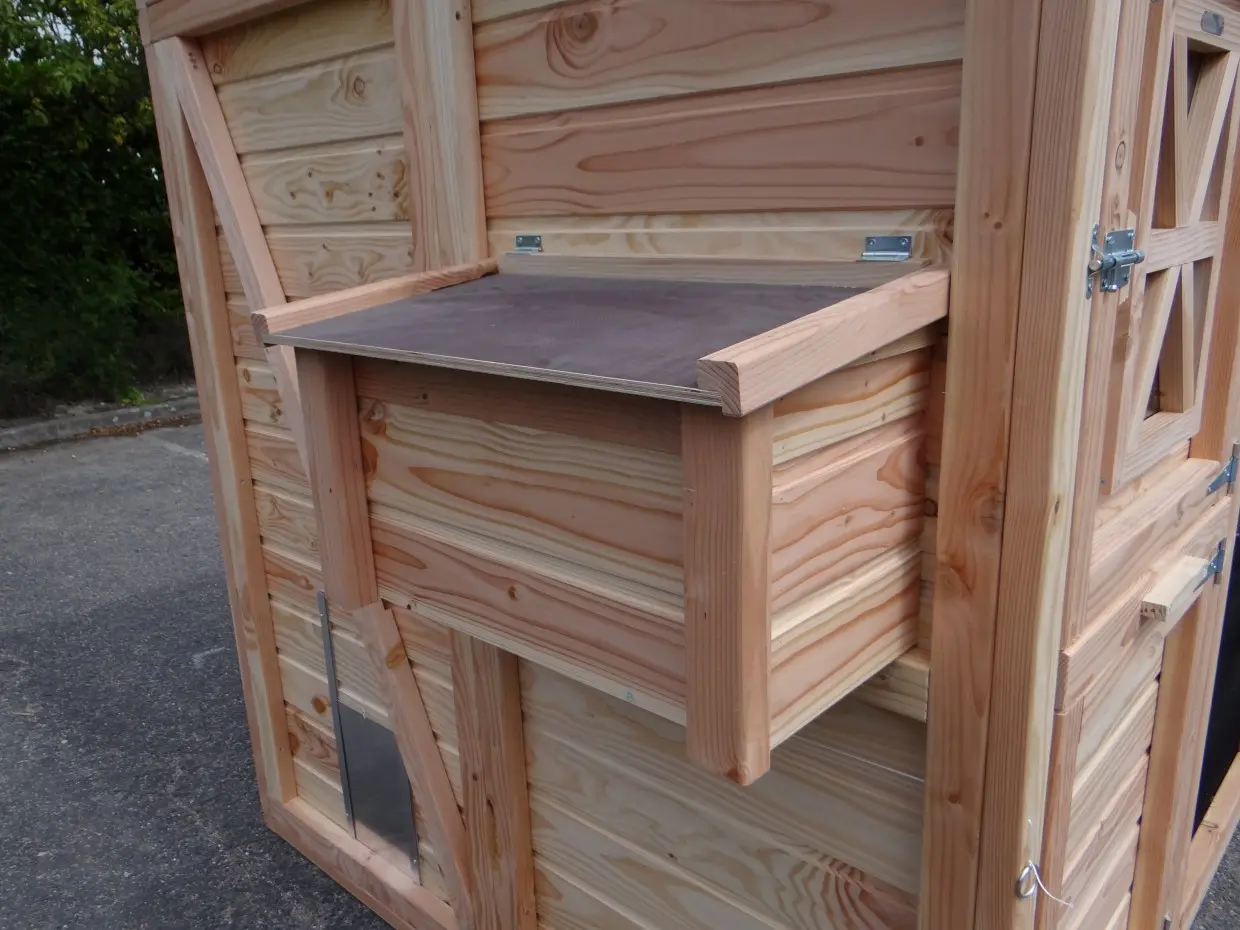 - Ce poulailler est équipé d'un nichoir