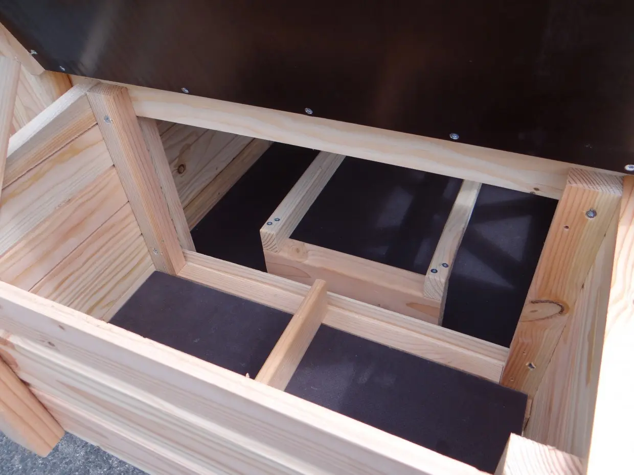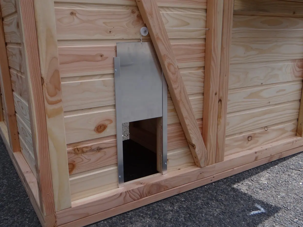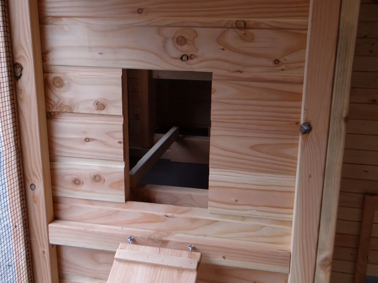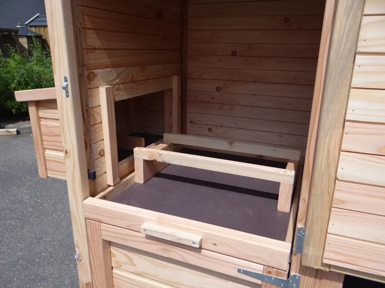 - Ce poulailler est équipé d'un nichoir