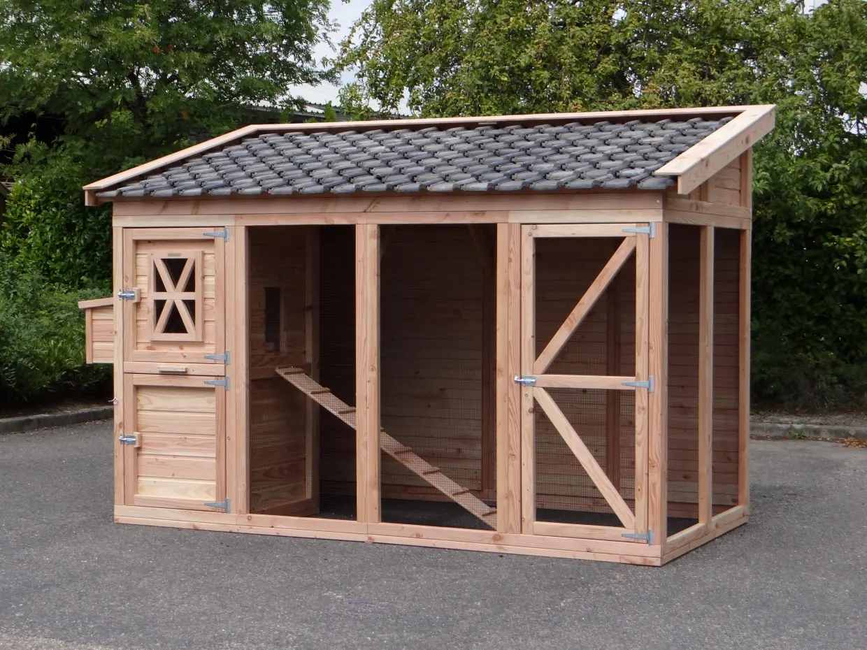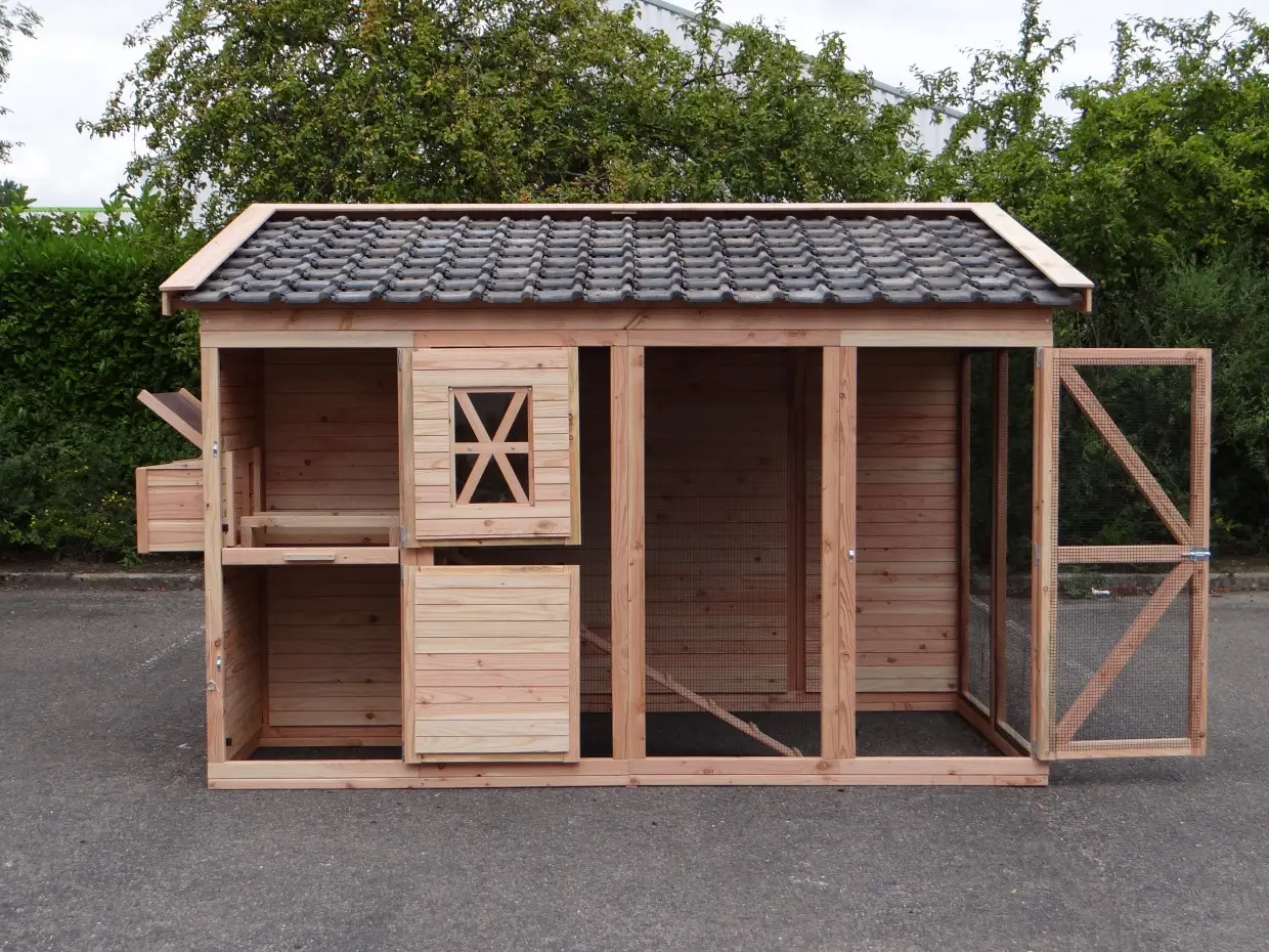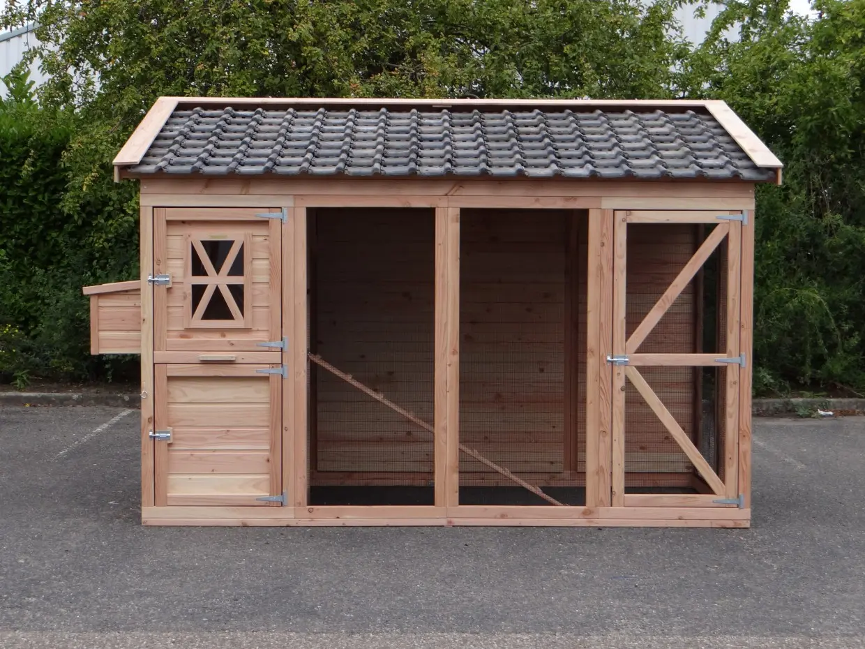 avec pondoir, porte coulissante et tuiles