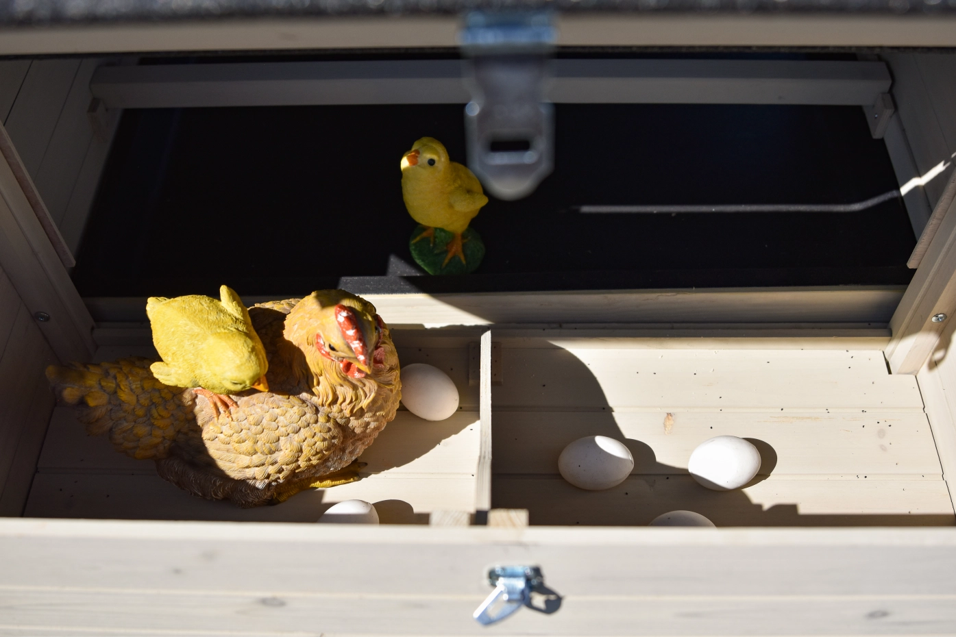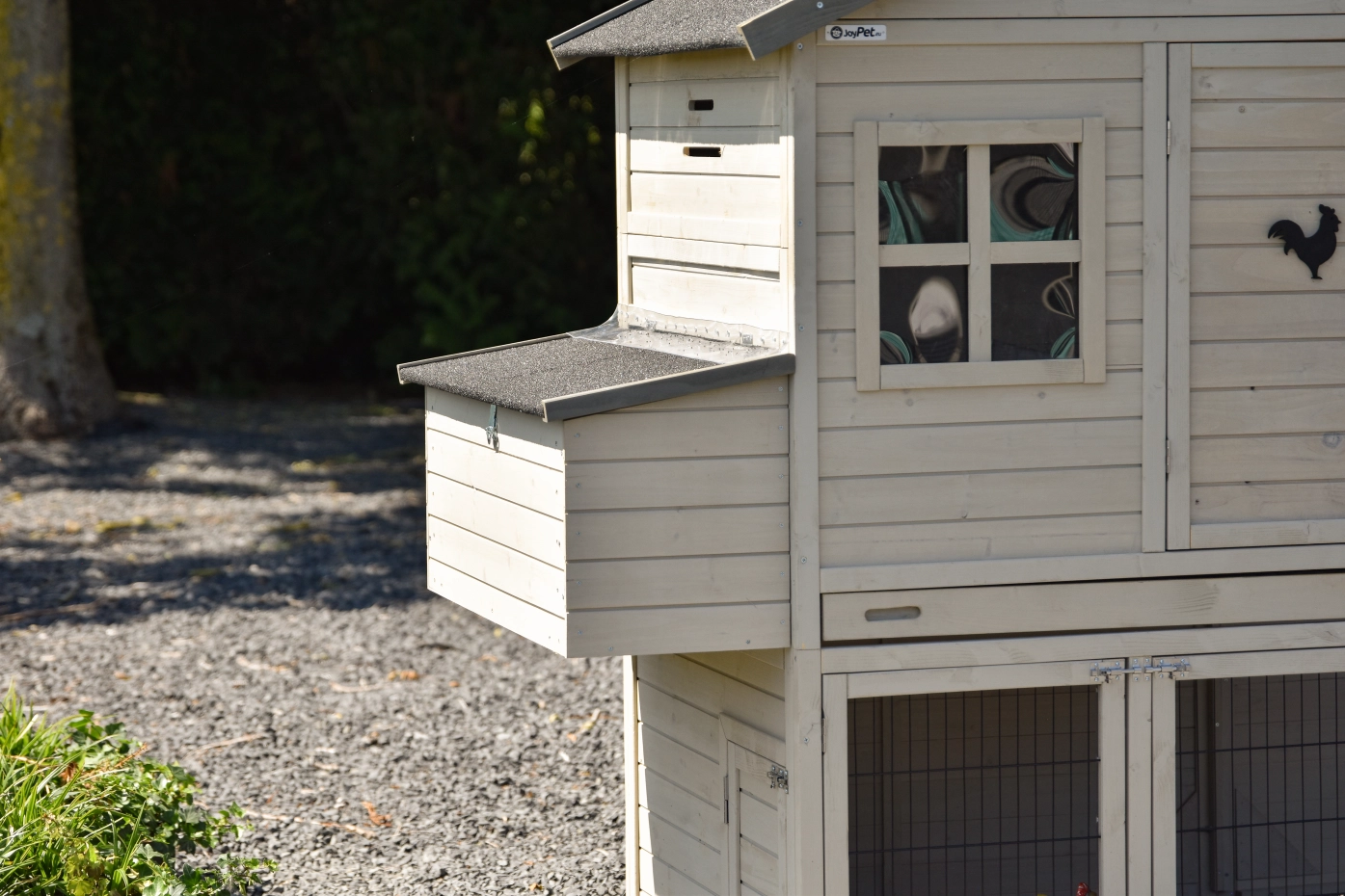 - Ce poulailler est équipé d'un nichoir