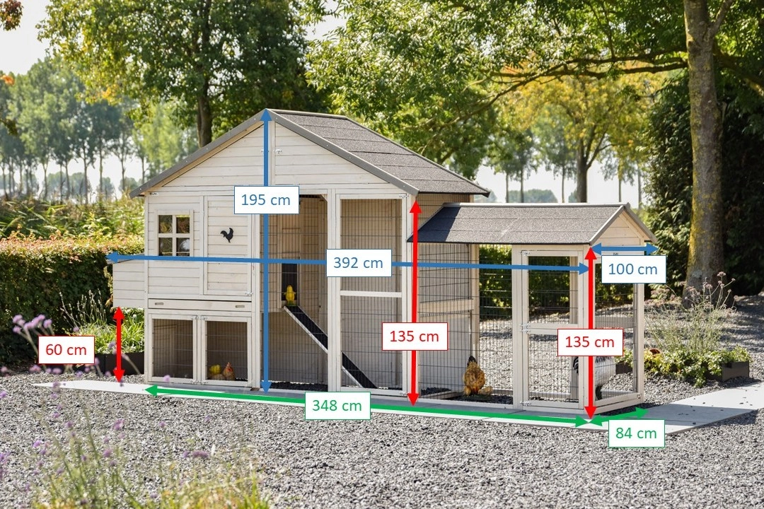 | Dimensions extérieures incluant le toit et nichoir (LxPxH) | 392x100x195cm |