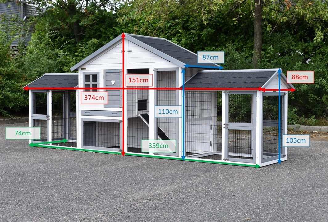 | Dimensions extérieures incluant le toit (LxPxH) | 374x88x151cm |