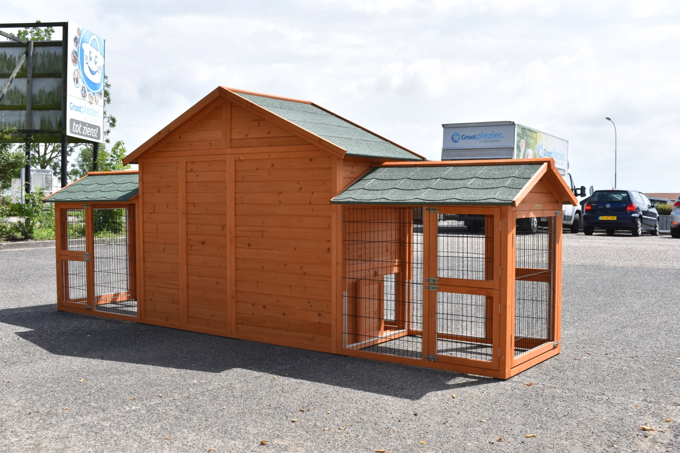 Le bois utilisé pour le loft est un produit naturel unique qu'a été produit dans le pays d'origine, après une sélection rigoureuse, dans une manière traditionelle. C'est caractéristique et unique à tous égards. Ce produit en bois a été un traitement manuel. Aucune pièce de bois ne possède la même forme, la même structure ou la même couleur, de sorte que les nuances de couleur sont inévitables, même dans un morceau de bois. Les fissures dues au vent, les craquelures, les imperfections et la présence de gros et de petits noeuds témoignent de leur origine et de leurs années de croissance. Les bosses sont généralement mises à jour manuellement avec du bois. Grâce à leur utilisation et à l’influence de la lumière, les nouveaux maisons pour animaux auront une couleur plus chaude au fil du temps. Les différences de couleur au modèle d'exposition sont donc possibles. L'enclos pour animaux est munie d'un fini antitache dans les couleurs comme sur la photo. Vous devez encore décaper le bois pour éviter les moisissures et la pourriture. Vous pouvez facilement commander des taches directement.