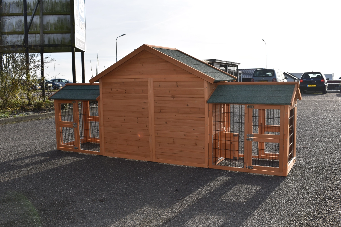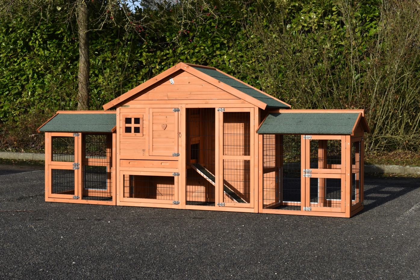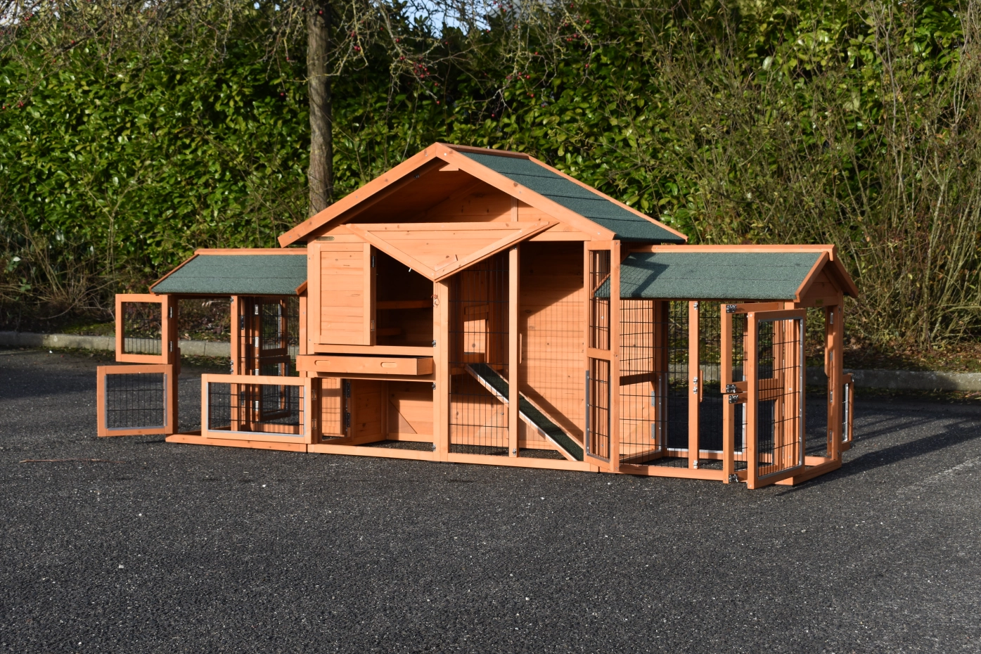 Très beau poulailler Holiday Small avec tiroir pratique, pour un nettoyage facile. Par sa rampe, vos animaux peuvent facillement aller au poulailler fermé. Le poulailler a grande portes avec fermetures doubles et est équipée avec fermetures doubles. Le poulailler a une grenier de stockage pratique. Le toit est équipée avec toit bitumé vert.