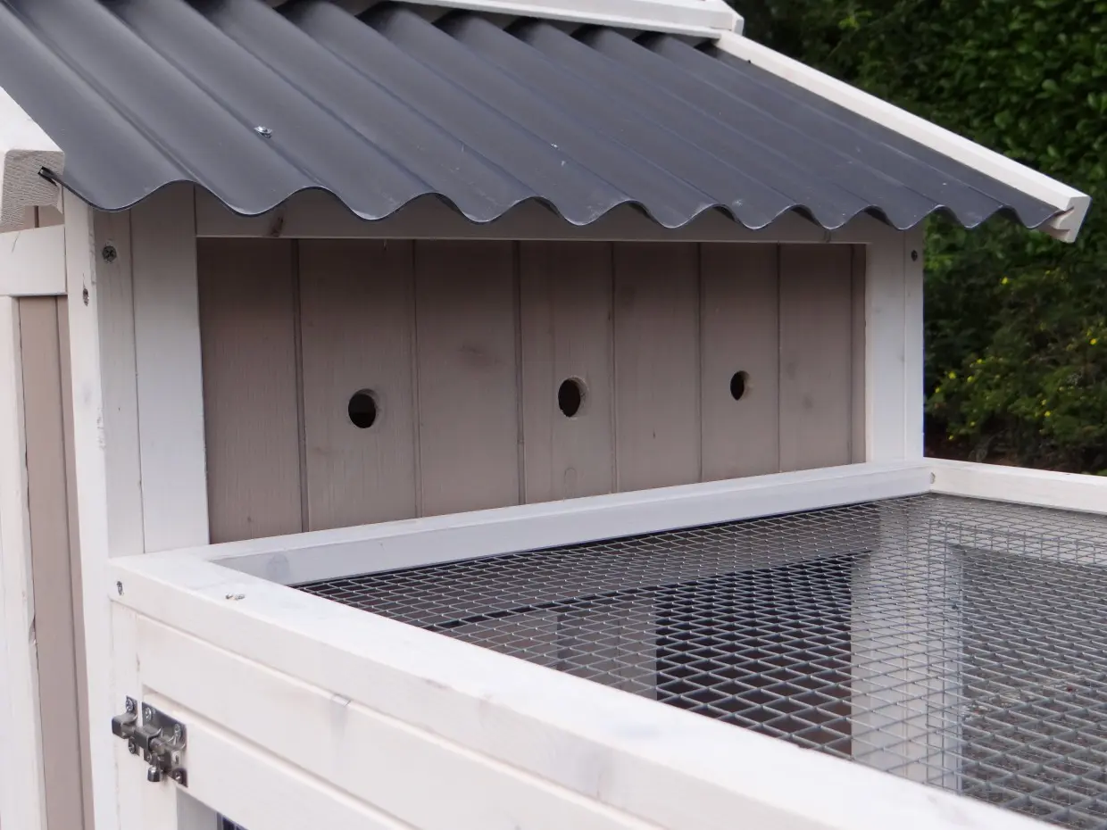 - Le clapier à lapin est équipé d'un toit en plastique
