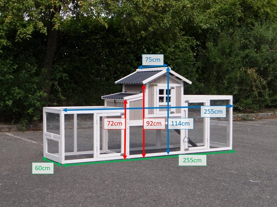 | Dimensions extérieures incluant le toit (LxPxH) | 255x75x114cm |
