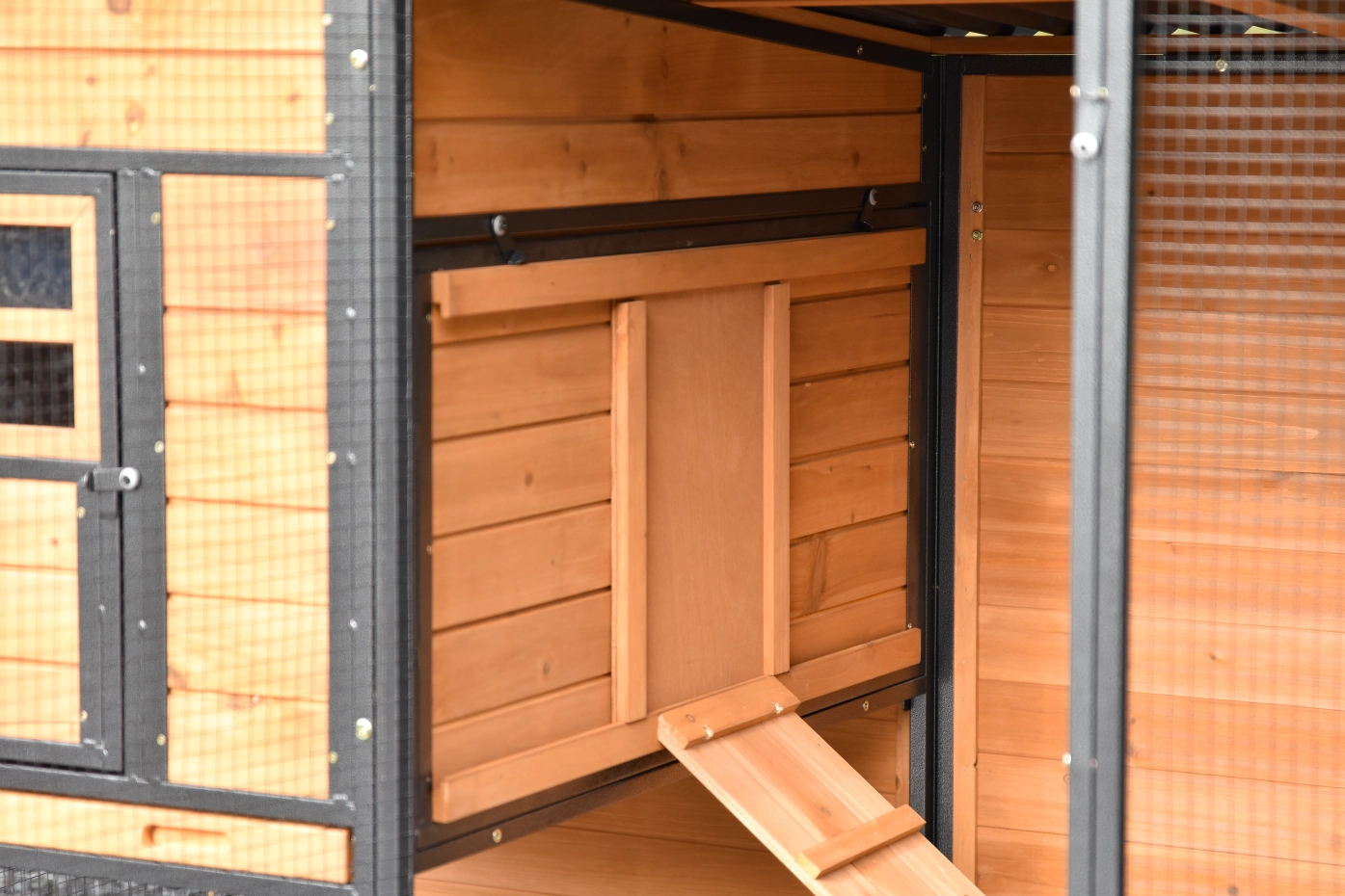 Le poulailler Judy est très spacieux et pratique. Il offre un habitat confortable pour vos poules et dispose d’un grand abri nocturne pour une protection supplémentaire. Avec un tiroir de nettoyage pratique et un grand enclos, il est parfait pour 4 grandes poules ou jusqu’à 9 petites poules. Grâce à sa structure métallique, le poulailler Judy est très solide et stable.