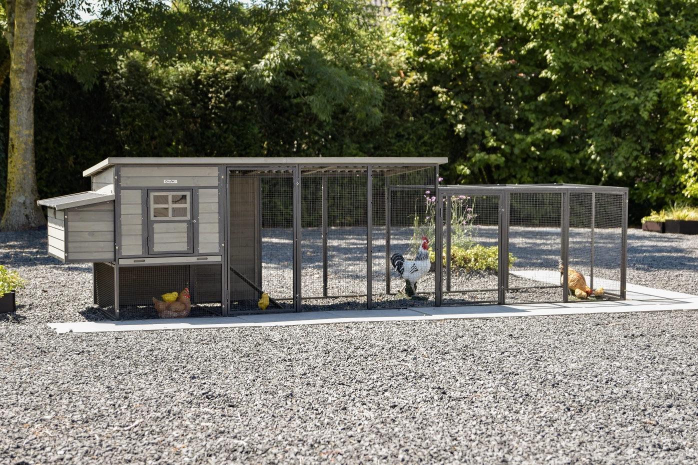 Avec un tiroir de nettoyage pratique, un nid de ponte spacieux et un enclos extra large, il est parfait pour 4 grandes poules ou jusqu’à 9 petites.