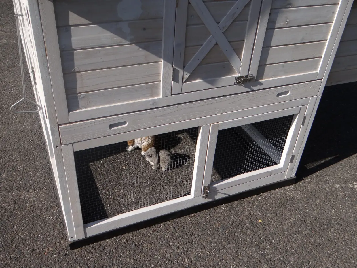 Il est conseillé de traiter périodiquement les charnières et les serrures avec un spray en silicone ou un spray pour serrures pour éviter la rouille et la corrosion. Si l'animal n'est pas dans un endroit abrité, nous vous conseillons d'ancrer l'enclos.