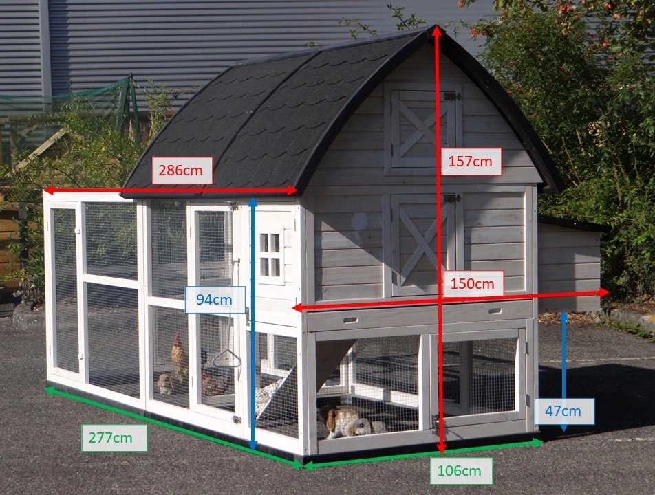 | Dimensions extérieures incluant le toit et nichoir (LxPxH) | 286x150x157cm |