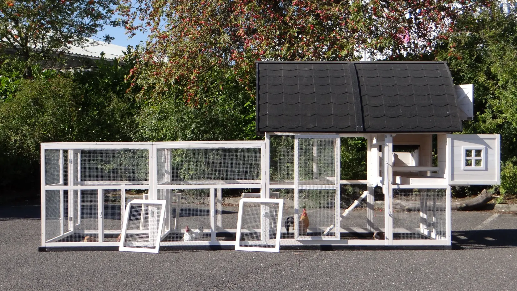 - Ce poulailler est équipé d'un nichoir