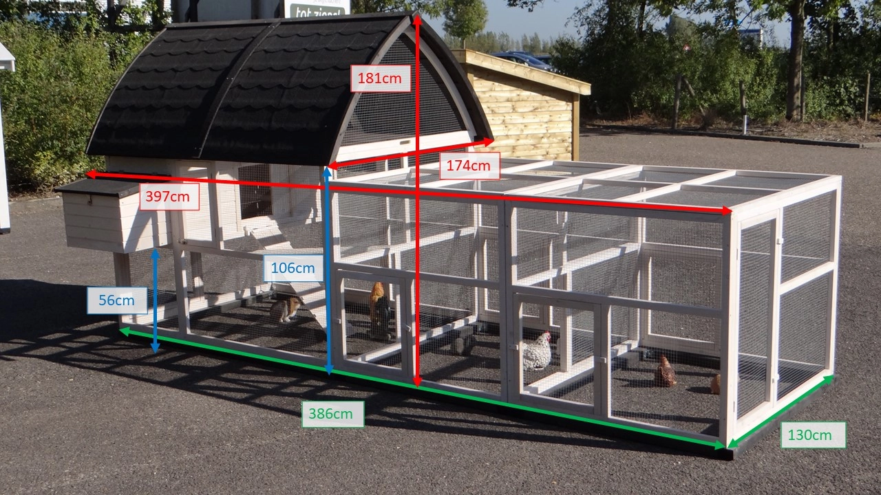 | Dimensions extérieures incluant le toit et nichoir (LxPxH) | 397x174x181cm |