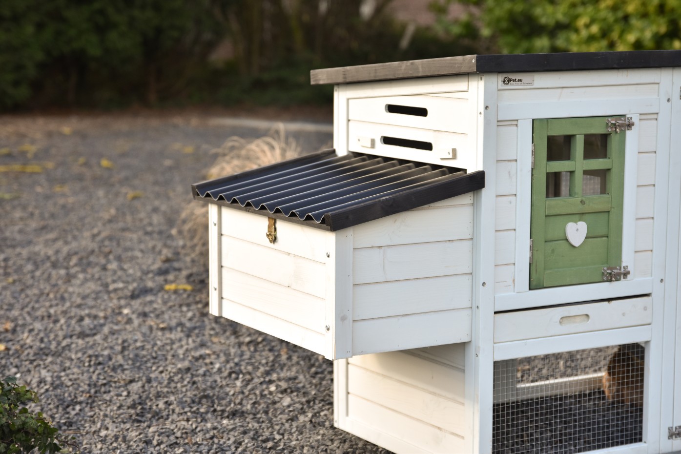 - Le clapier à lapin est équipé d'un toit en plastique