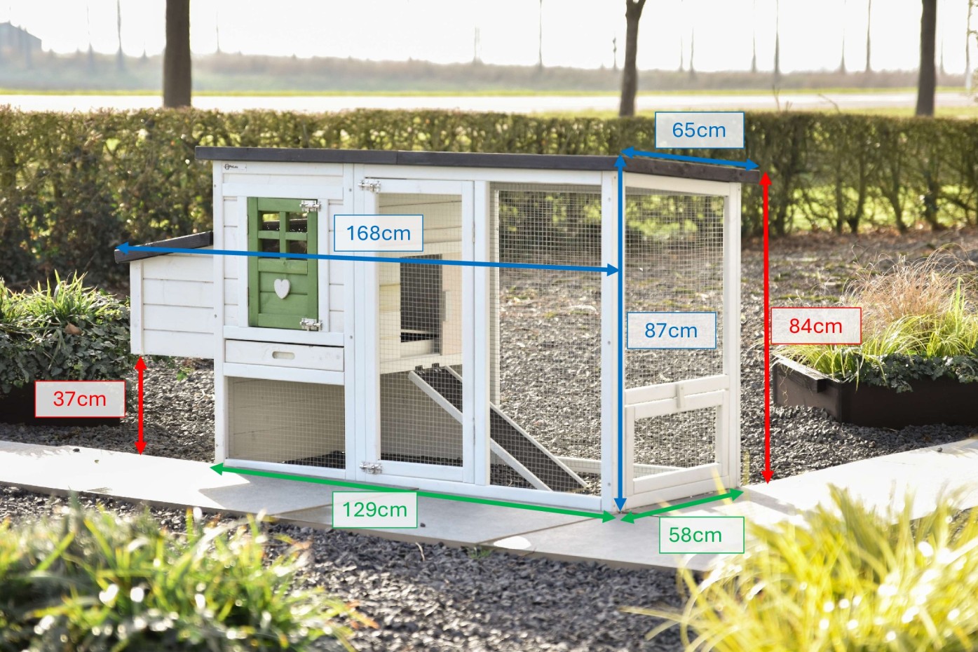 | Dimensions extérieures incluant le toit et nichoir (LxPxH) | 168x65x87cm |
