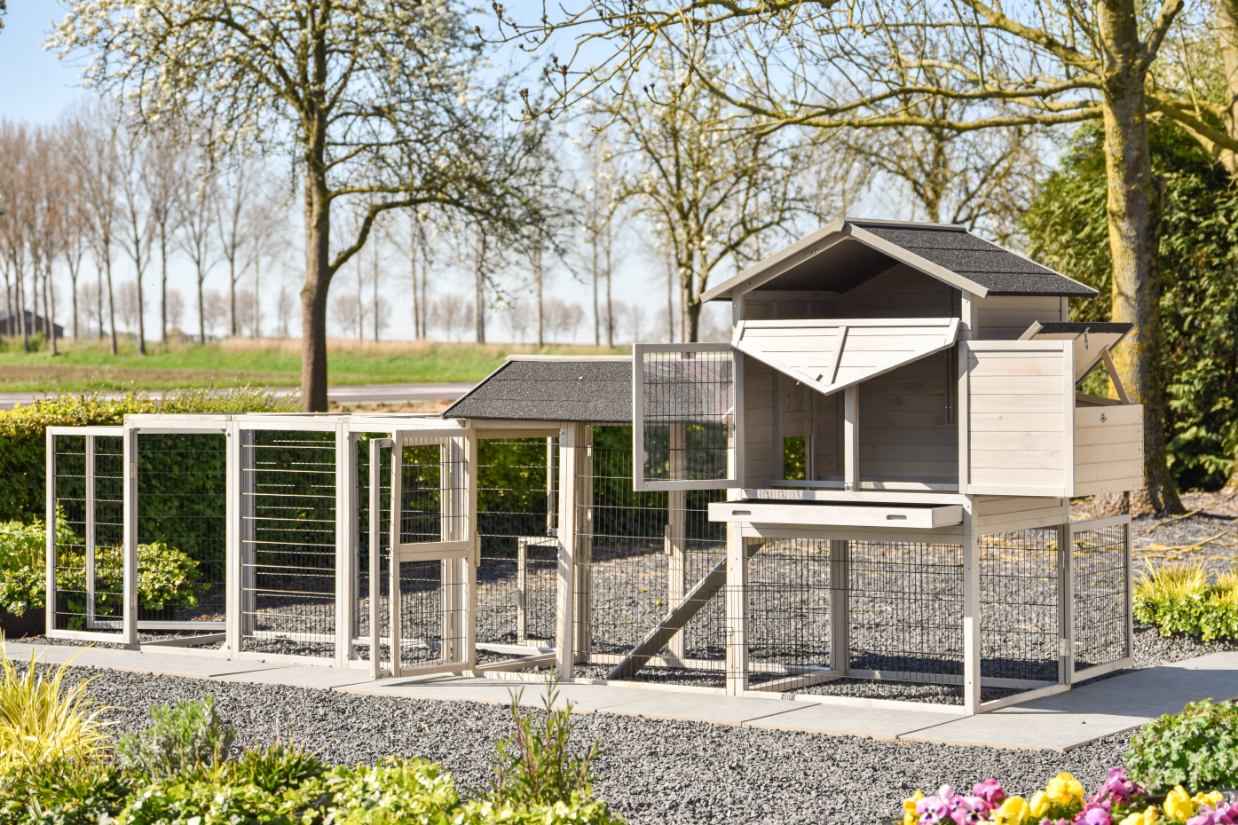 De plus, le poulailler Prestige Large avec pondoir peut être facilement agrandi avec des enclos supplémentaires pour offrir plus d’espace