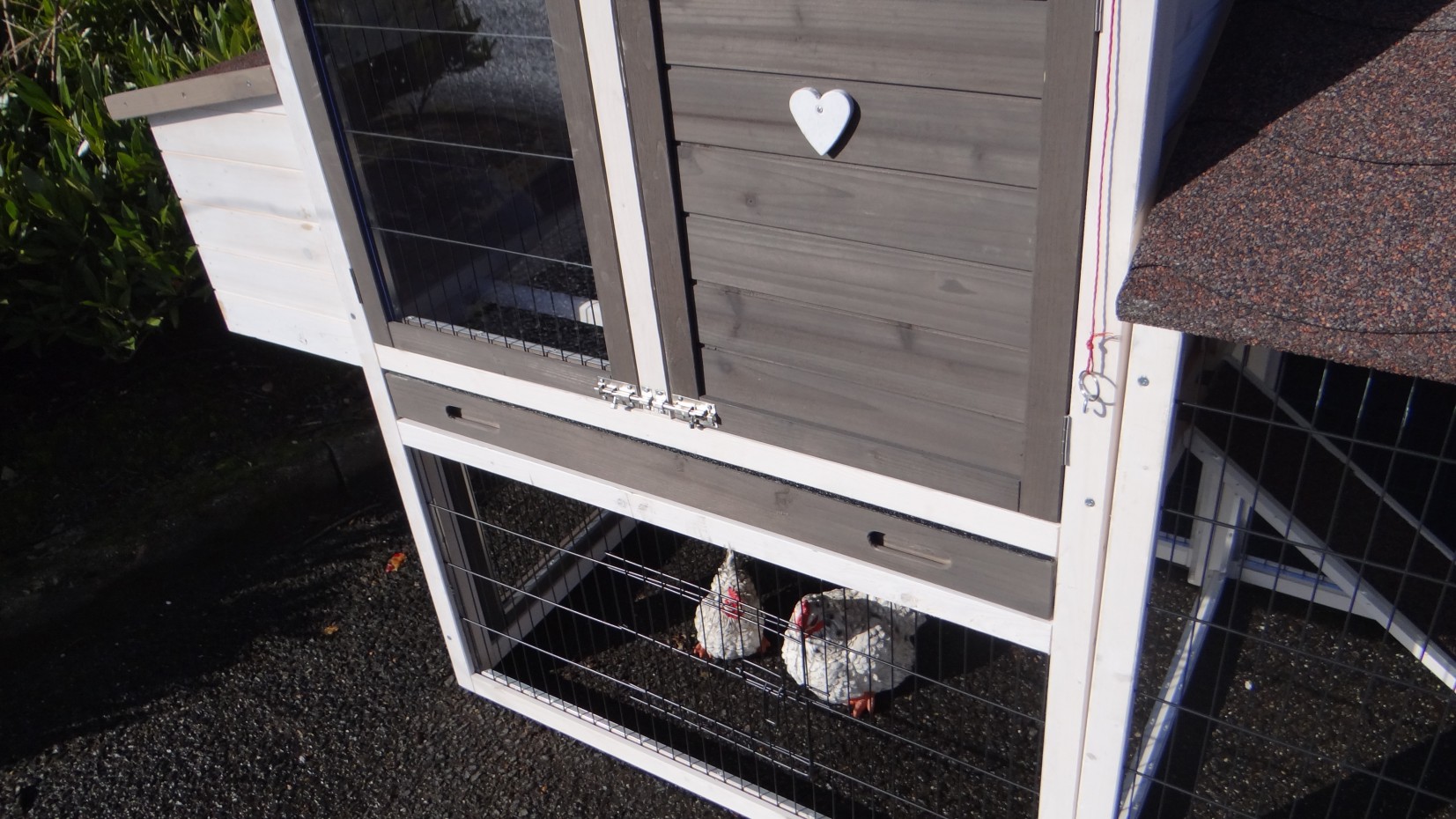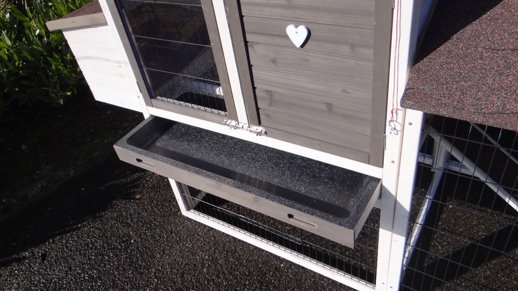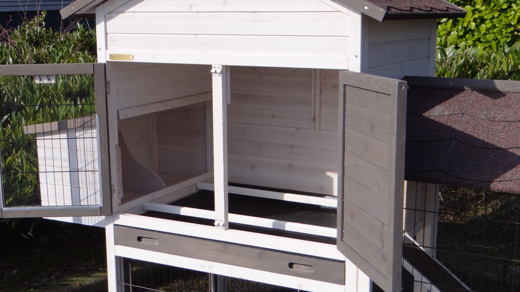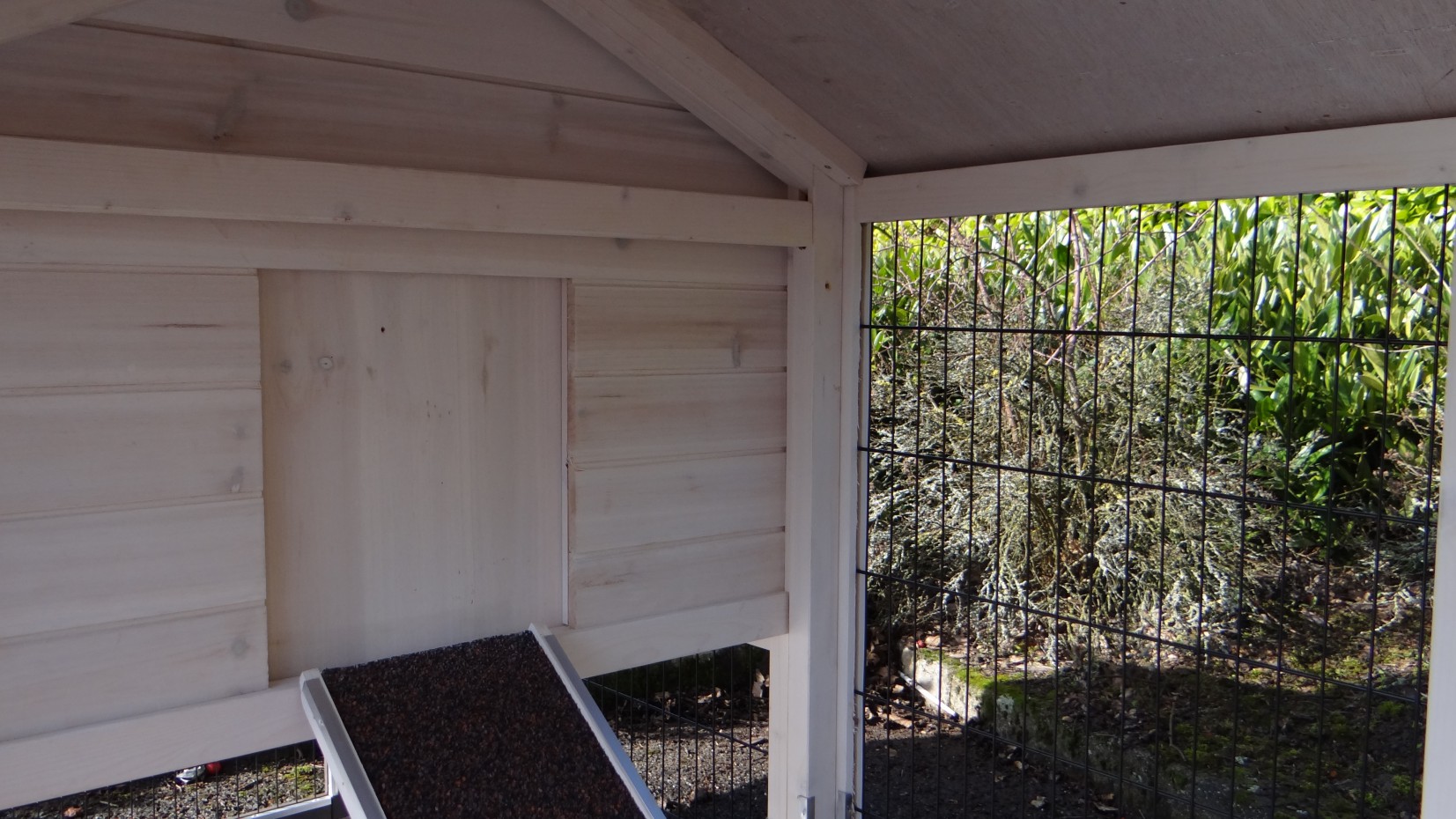 Poulailler Prestige Medium avec enclos à droite. Ce poulailler est vraiment une bonne maison pour vos poules! Vous pouvez ramasser des oeufs facillement du pondoir.