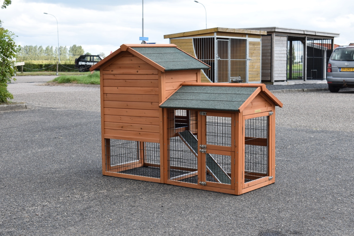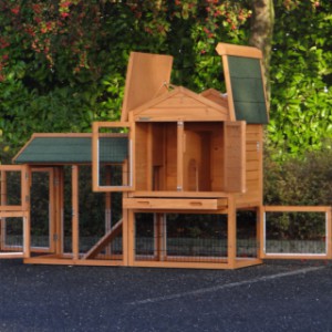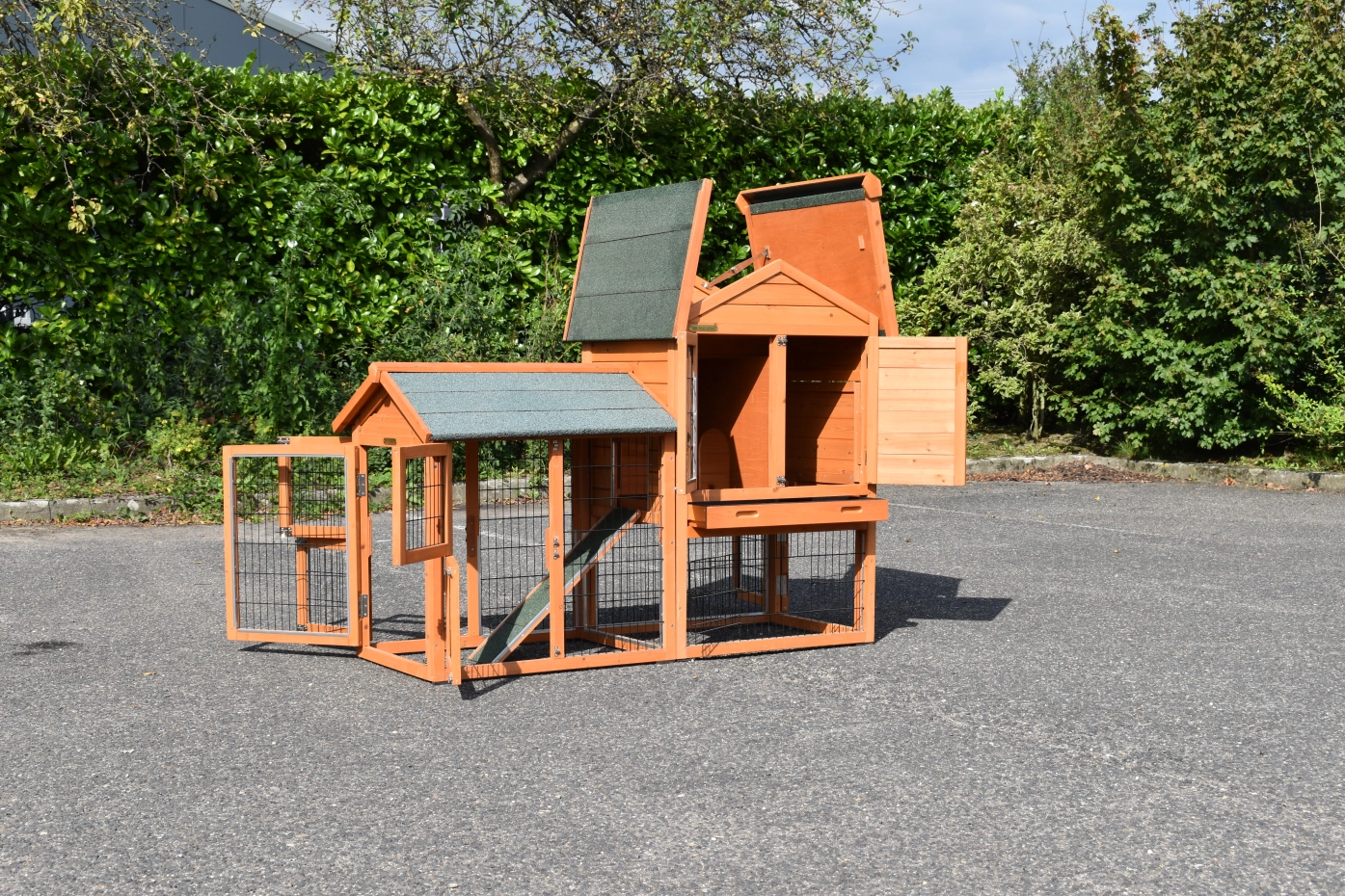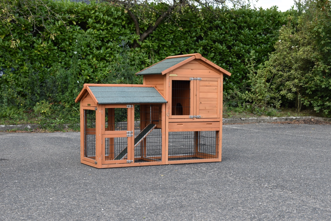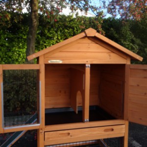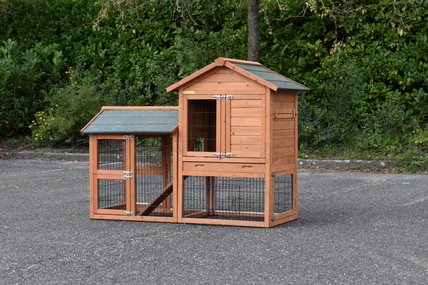 Le bois utilisé pour le loft est un produit naturel unique qu'a été produit dans le pays d'origine, après une sélection rigoureuse, dans une manière traditionelle. C'est caractéristique et unique à tous égards. Ce produit en bois a été un traitement manuel. Aucune pièce de bois ne possède la même forme, la même structure ou la même couleur, de sorte que les nuances de couleur sont inévitables, même dans un morceau de bois. Les fissures dues au vent, les craquelures, les imperfections et la présence de gros et de petits noeuds témoignent de leur origine et de leurs années de croissance. Les bosses sont généralement mises à jour manuellement avec du bois. Grâce à leur utilisation et à l’influence de la lumière, les nouveaux maisons pour animaux auront une couleur plus chaude au fil du temps. Les différences de couleur au modèle d'exposition sont donc possibles. L'enclos pour animaux est munie d'un fini antitache dans les couleurs comme sur la photo. Vous devez encore décaper le bois pour éviter les moisissures et la pourriture. Vous pouvez facilement commander des taches directement.