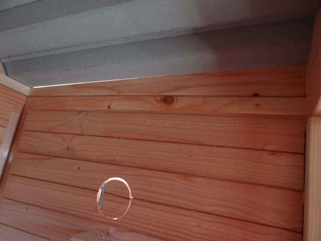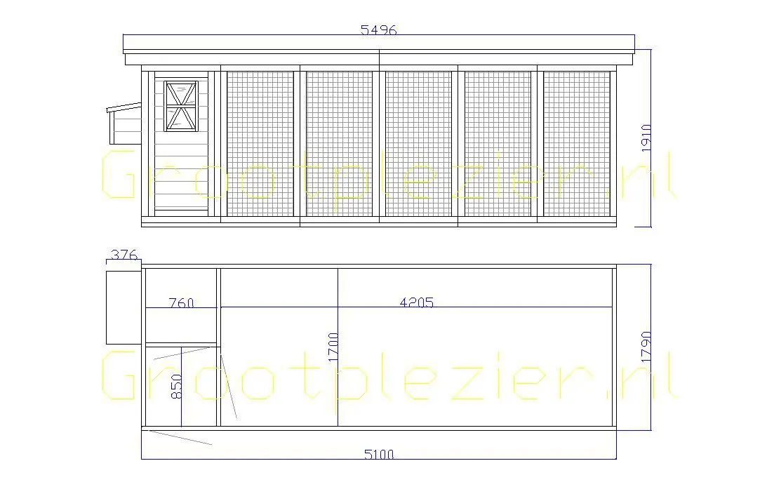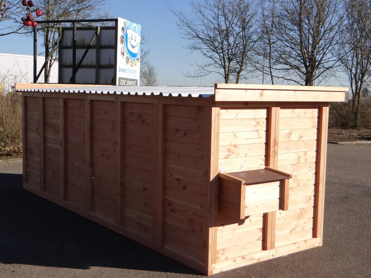 - En bois de Douglas, avec des cadres de 68x44mm, des planches avec un épaisseur de 18mm. Même sans traitement du bois, le bois est durable pour 15 ans, mais le bois se devient gris vite si vous n'utilisez pas des huile pour le Douglas.