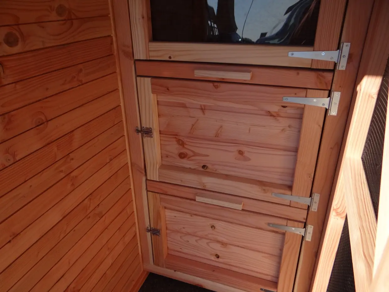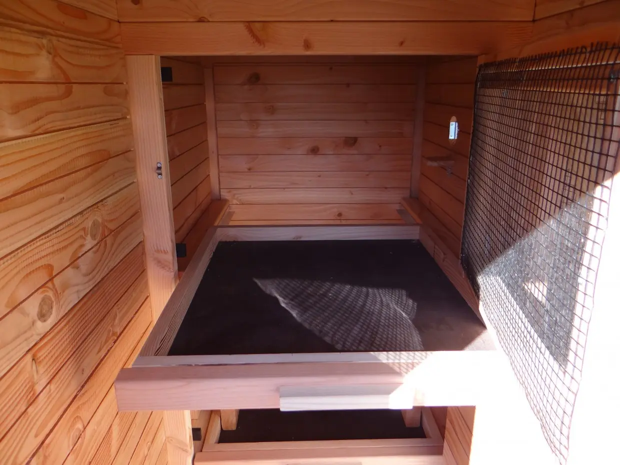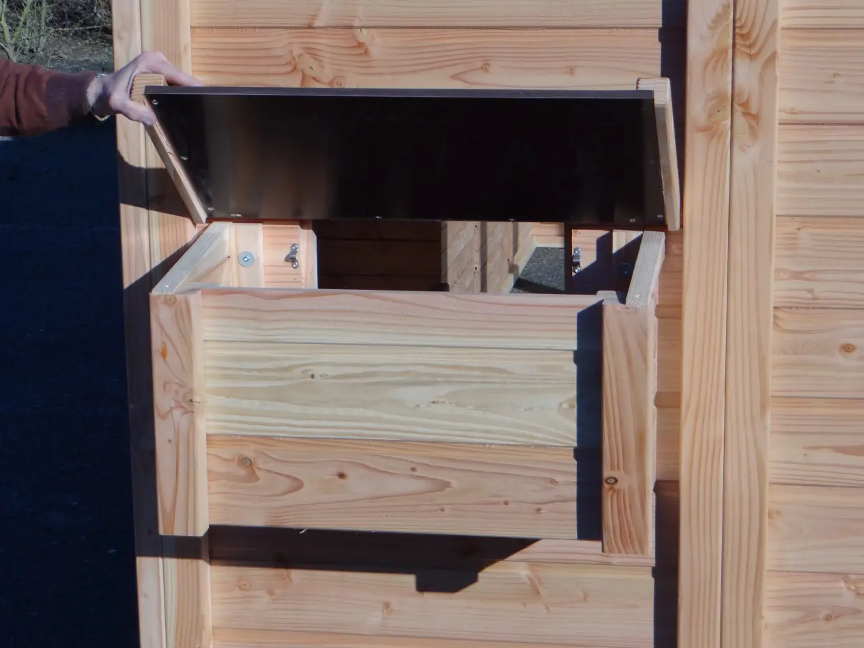 Nettoyer les espaces de nuit, ramasser les œufs ou entretenir l’enclos devient un jeu d’enfant. Grâce au sas d’entrée ingénieux, vous pouvez accéder à l’abri sans risque de voir les oiseaux ou les poules s’échapper. L’ensemble est construit à hauteur d’homme, pour un confort optimal.