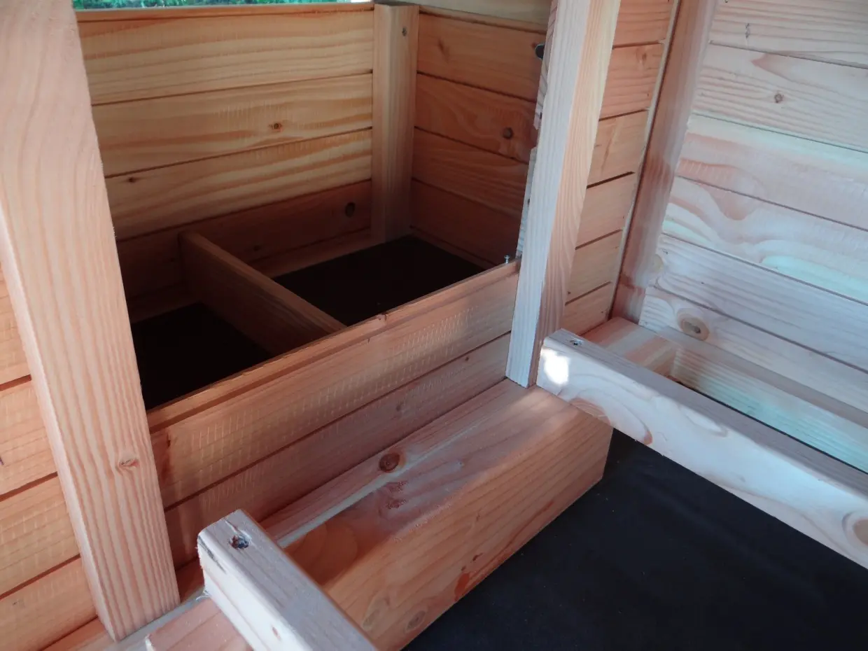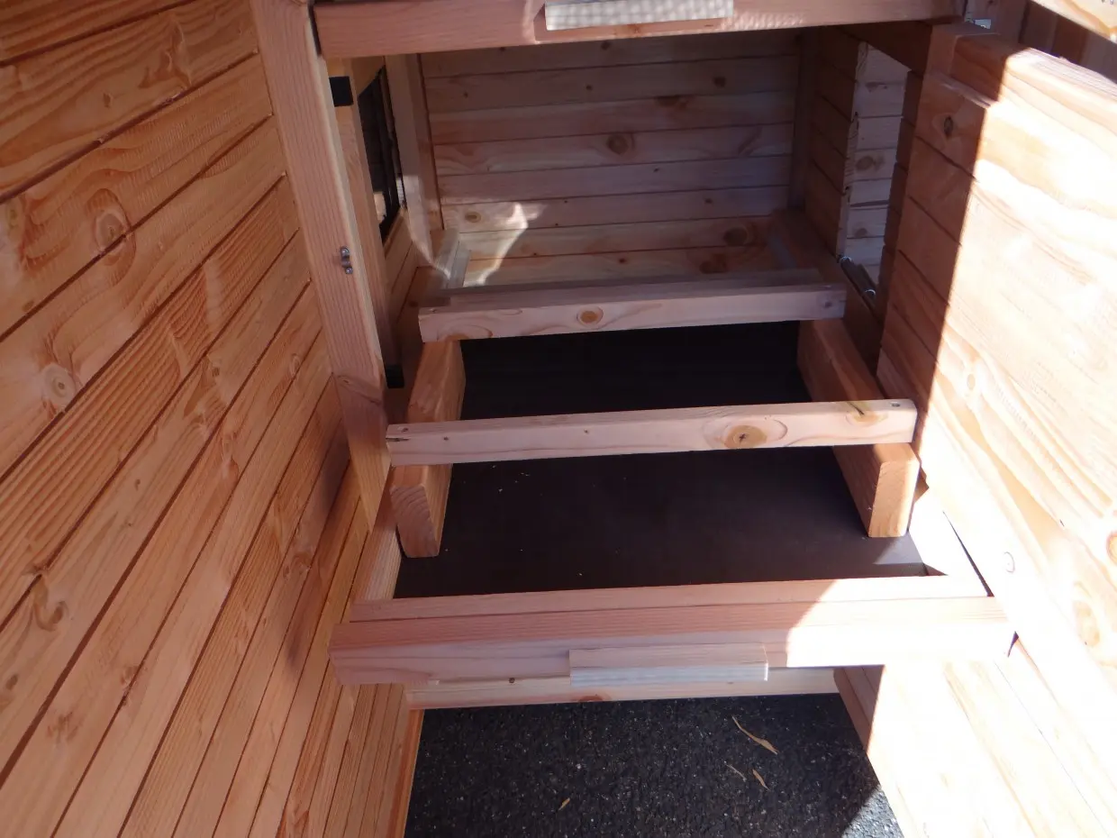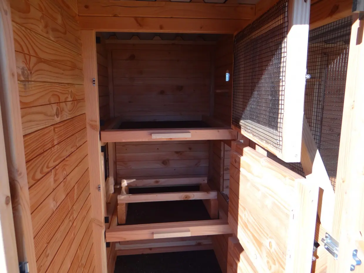 Nettoyer les espaces de nuit, ramasser les œufs ou entretenir l’enclos devient un jeu d’enfant. Grâce au sas d’entrée ingénieux, vous pouvez accéder à l’abri sans risque de voir les oiseaux ou les poules s’échapper. L’ensemble est construit à hauteur d’homme, pour un confort optimal.
