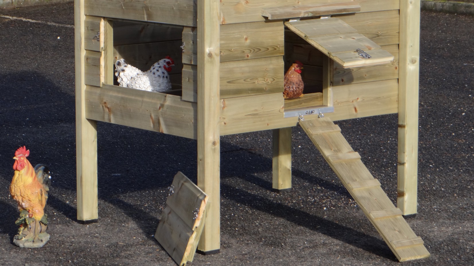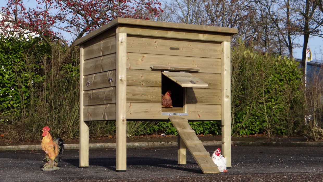- Le poulailler est équipé de pieds en plastique