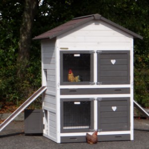 Le bois utilisé pour le loft est un produit naturel unique qu'a été produit dans le pays d'origine, après une sélection rigoureuse, dans une manière traditionelle. C'est caractéristique et unique à tous égards. Ce produit en bois a été un traitement manuel. Aucune pièce de bois ne possède la même forme, la même structure ou la même couleur, de sorte que les nuances de couleur sont inévitables, même dans un morceau de bois. Les fissures dues au vent, les craquelures, les imperfections et la présence de gros et de petits noeuds témoignent de leur origine et de leurs années de croissance. Les bosses sont généralement mises à jour manuellement avec du bois. Grâce à leur utilisation et à l’influence de la lumière, les nouveaux maisons pour animaux auront une couleur plus chaude au fil du temps. Les différences de couleur au modèle d'exposition sont donc possibles. L'enclos pour animaux est munie d'un fini antitache dans les couleurs comme sur la photo. Vous devez encore décaper le bois pour éviter les moisissures et la pourriture. Vous pouvez facilement commander des taches directement.