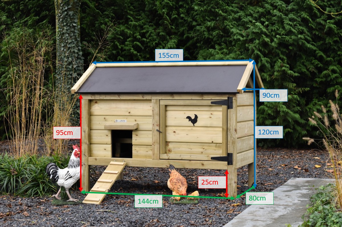 Ce modèle bas est facile à nettoyer grâce à son toit rabattable et à sa porte pratique à l'avant. Le détail charmant d'un coq sur la porte ajoute une touche de caractère au poulailler !