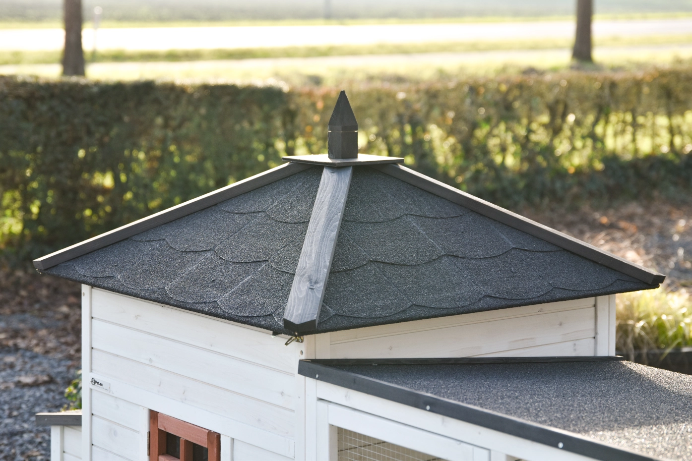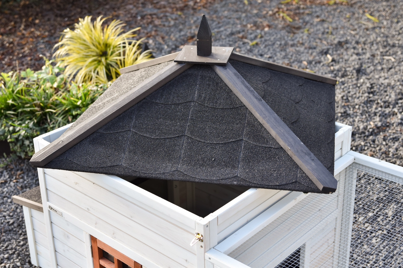 - Ce clapier est équipé d'un toit bitume
