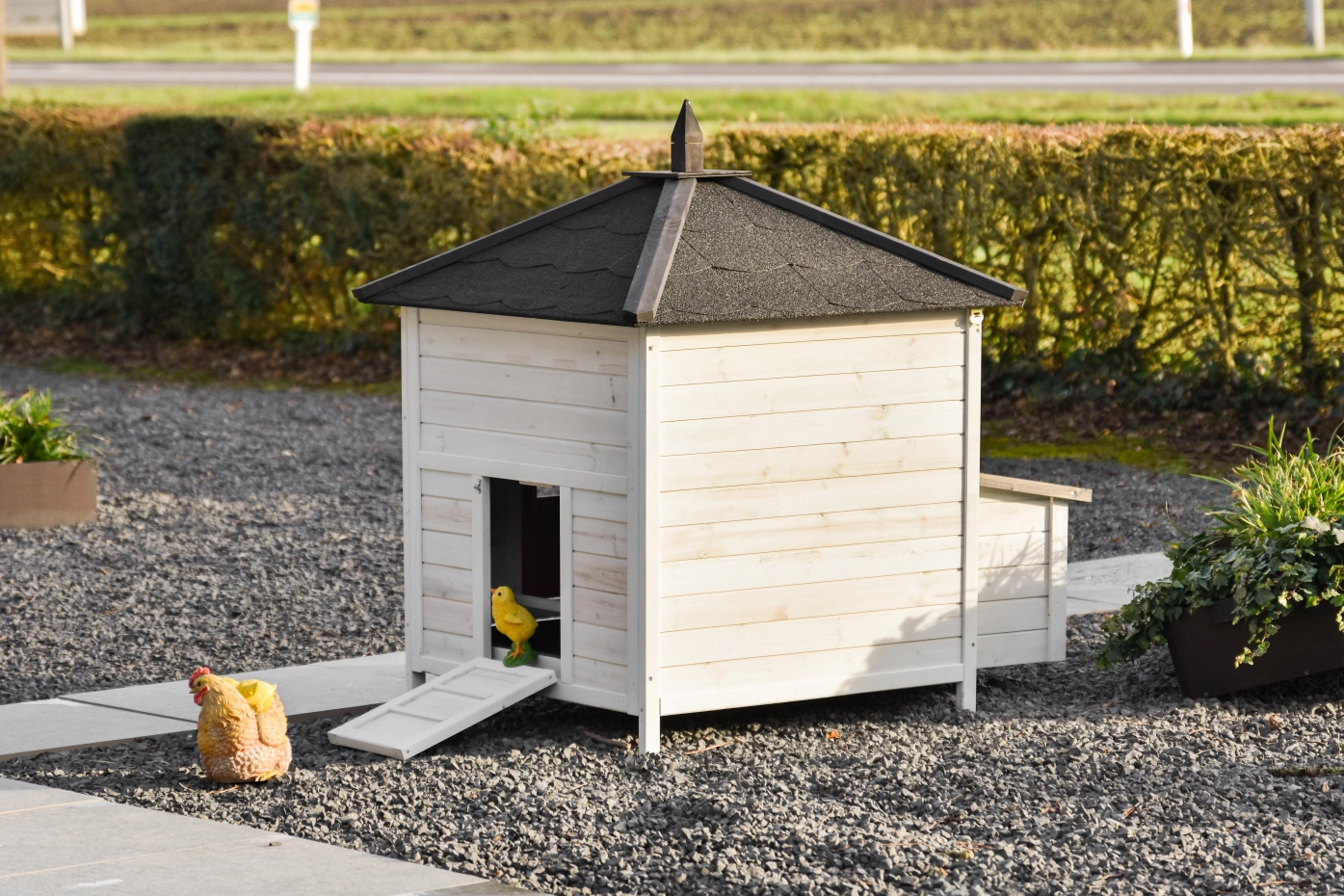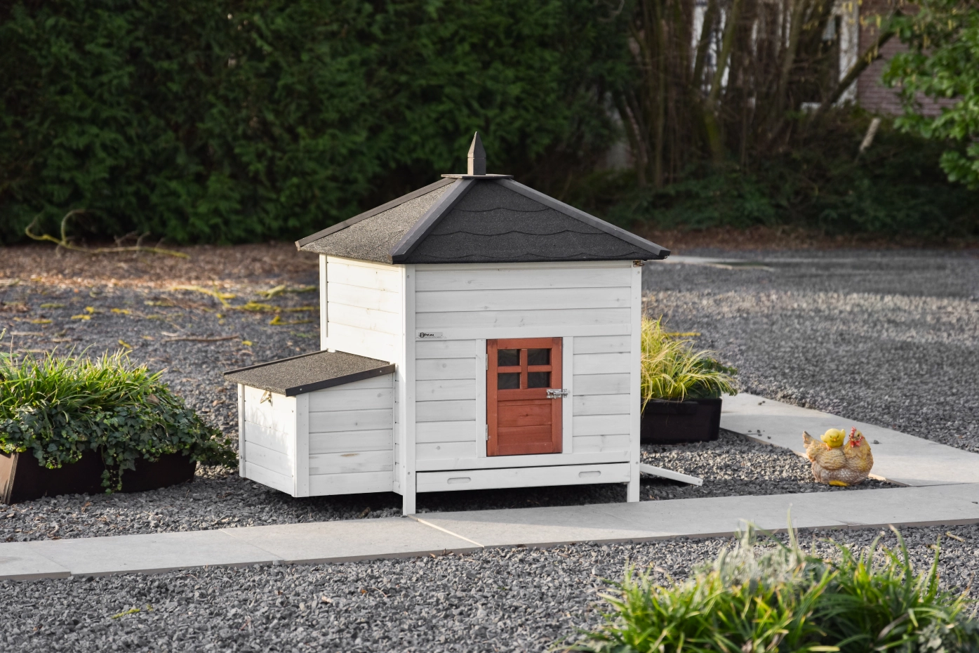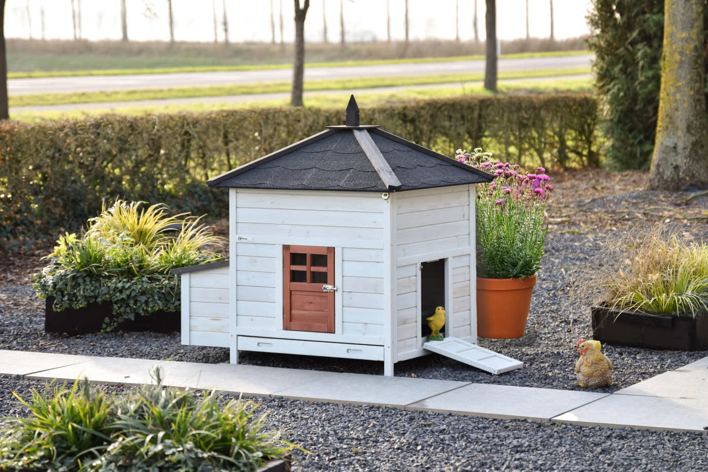 Le modèle Ambiance est un superbe poulailler, extensible à l’infini avec l’enclos Ambiance Large. Ces enclos supplémentaires peuvent être commandés séparément – une solution très flexible !