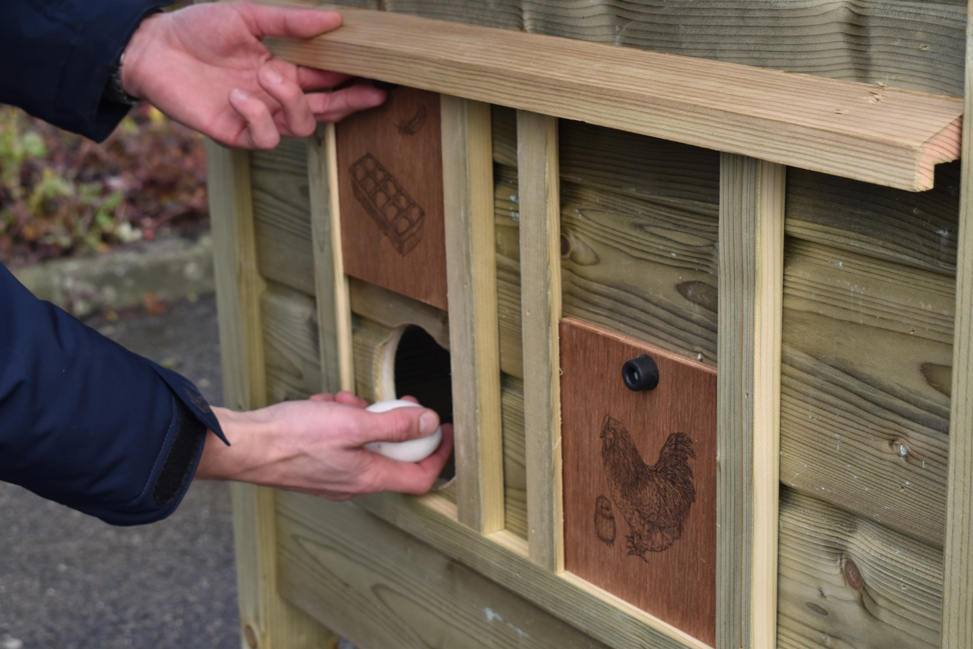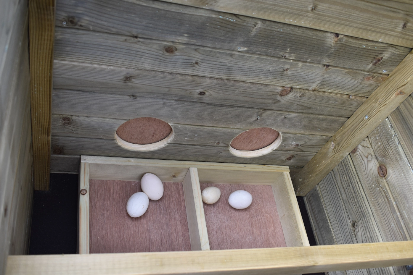 Fabriqué en bois imprégné et en contreplaqué béton, ce poulailler n’a pas besoin d’être peint pour rester solide et résistant aux intempéries.