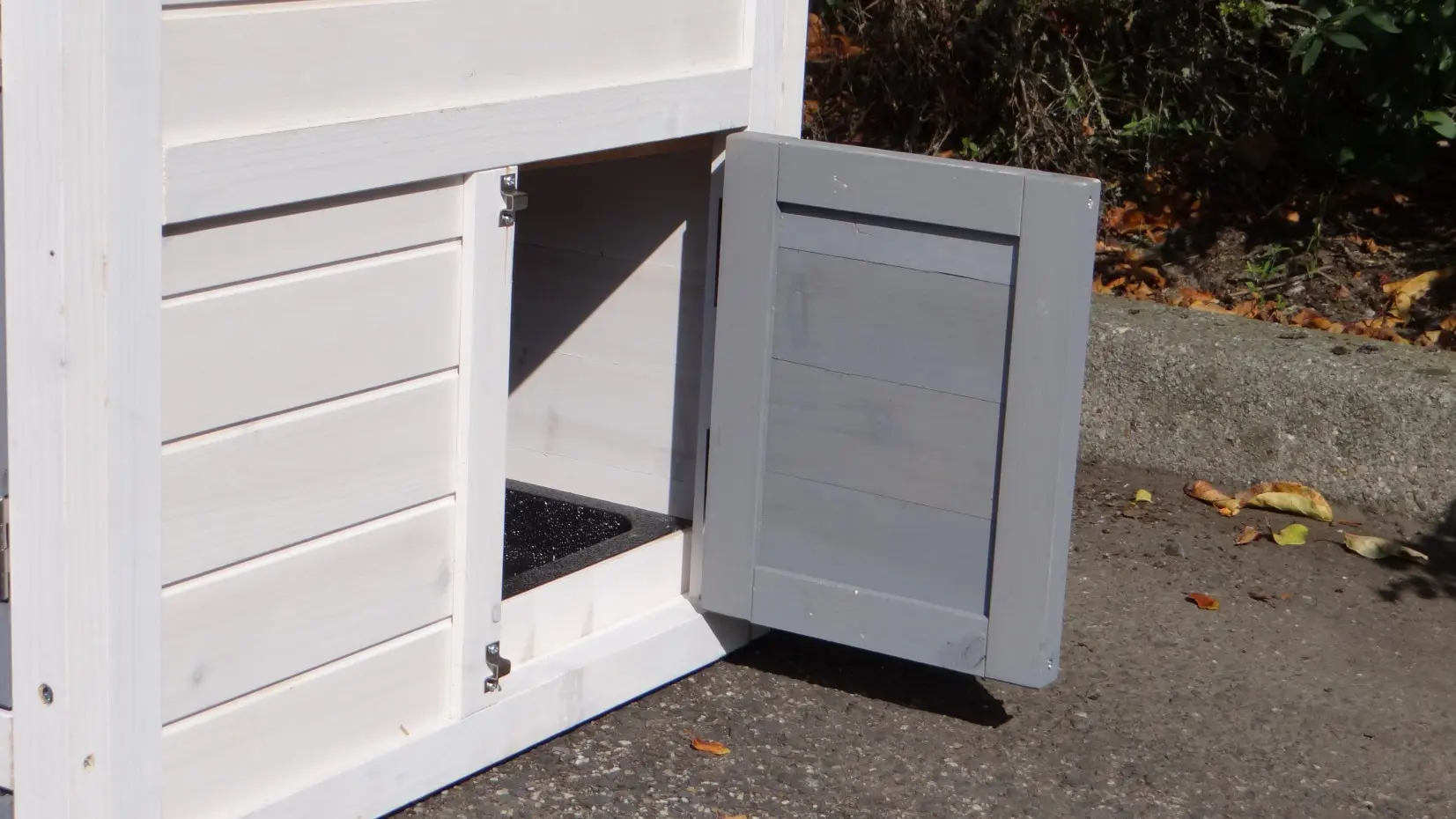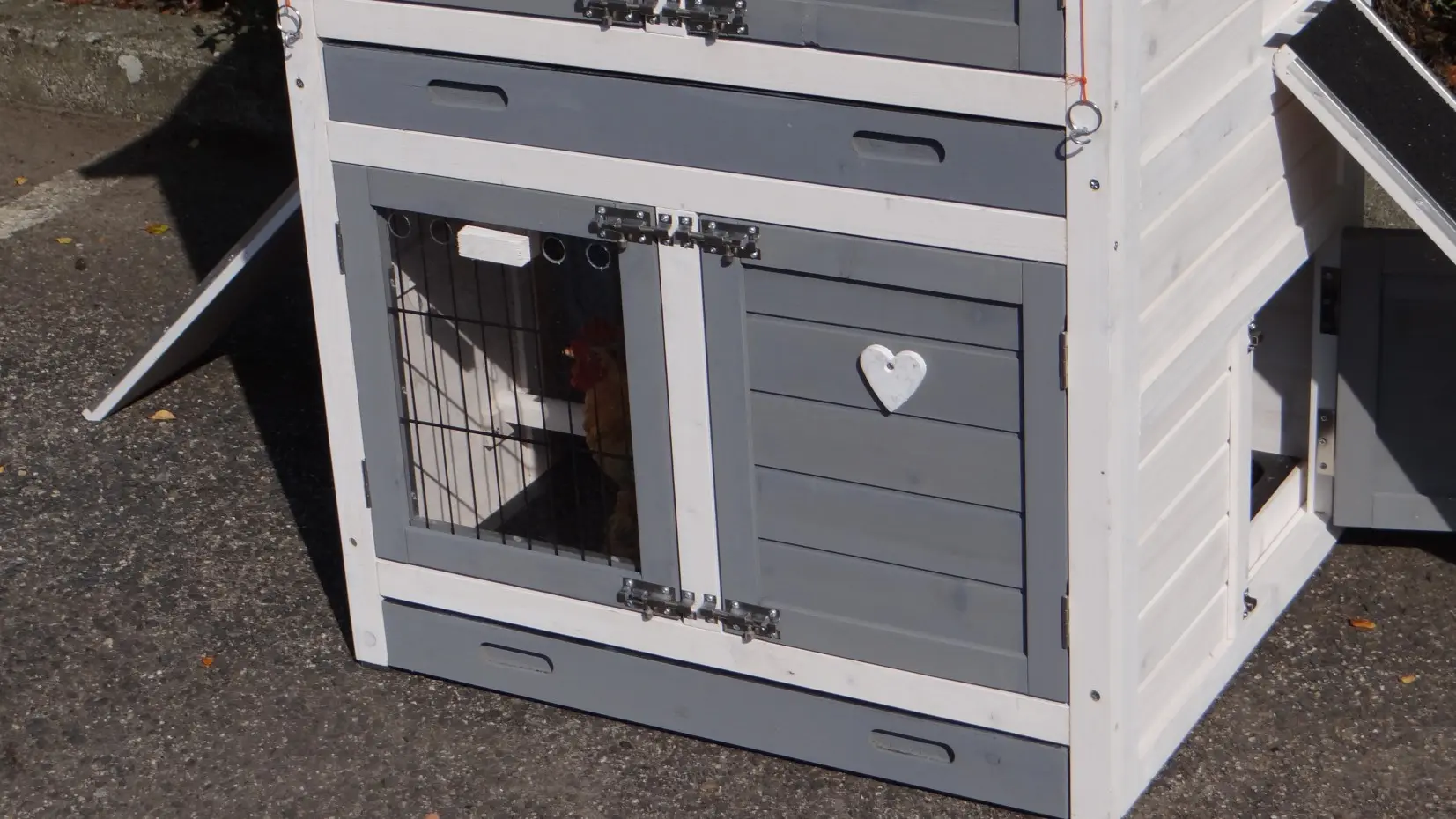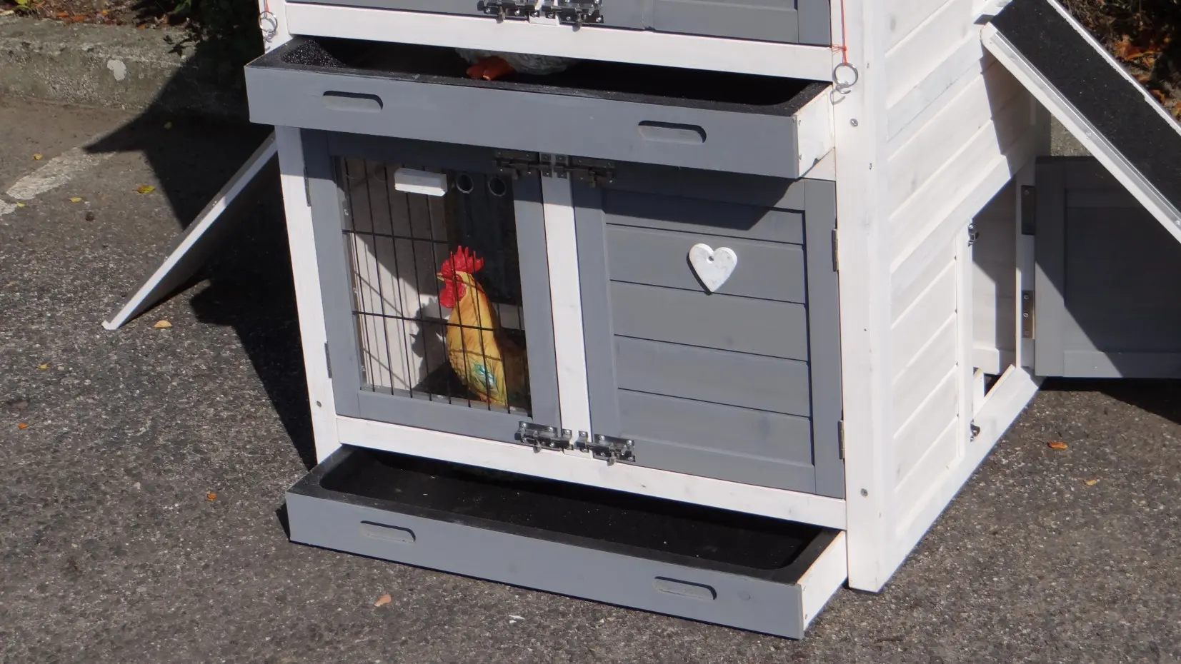 Le poulailler Double Small dispose de deux abris nocturnes séparés avec solides tiroirs à déjections en plastique coulissants.