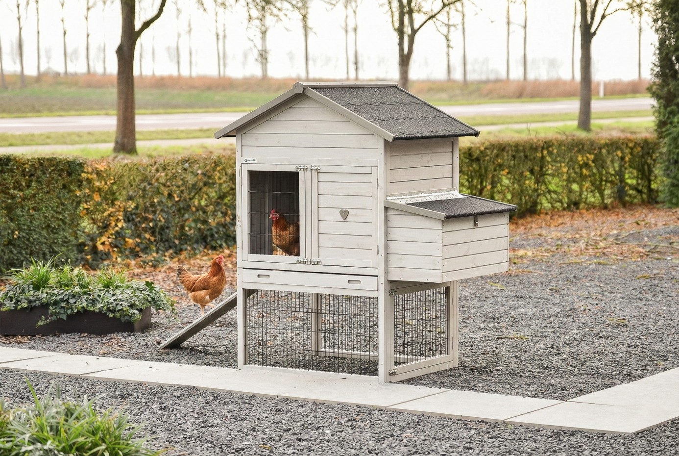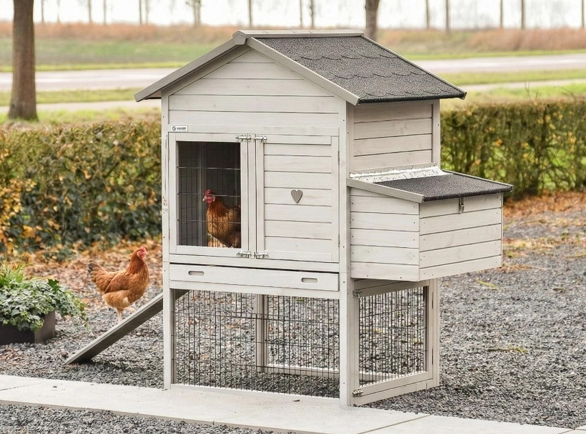 - Ce poulailler est équipé d'un nichoir