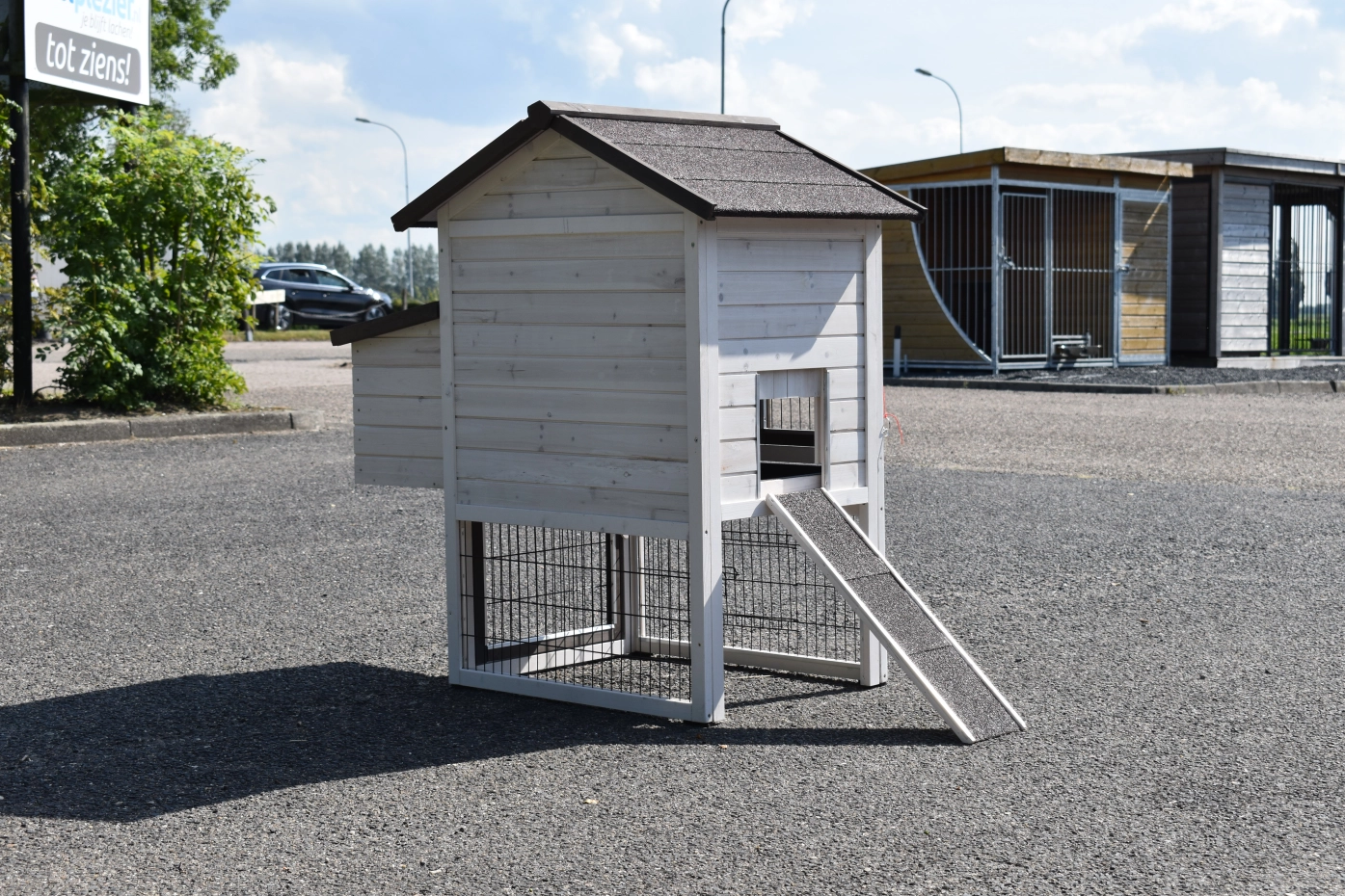 - Ce poulailler est équipé d'un nichoir