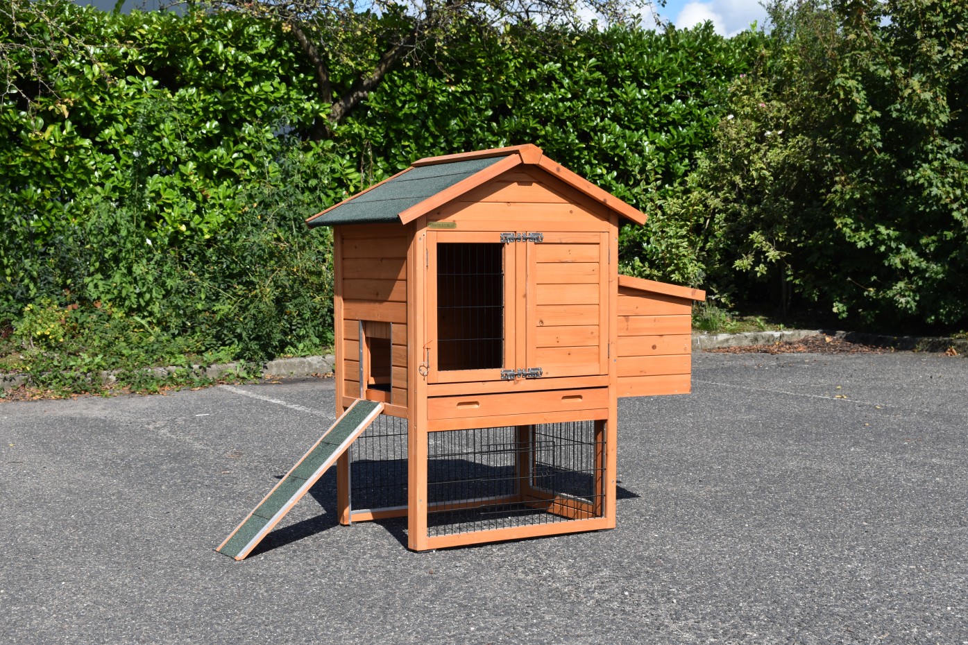 Le bois utilisé pour le loft est un produit naturel unique qu'a été produit dans le pays d'origine, après une sélection rigoureuse, dans une manière traditionelle. C'est caractéristique et unique à tous égards. Ce produit en bois a été un traitement manuel. Aucune pièce de bois ne possède la même forme, la même structure ou la même couleur, de sorte que les nuances de couleur sont inévitables, même dans un morceau de bois. Les fissures dues au vent, les craquelures, les imperfections et la présence de gros et de petits noeuds témoignent de leur origine et de leurs années de croissance. Les bosses sont généralement mises à jour manuellement avec du bois. Grâce à leur utilisation et à l’influence de la lumière, les nouveaux maisons pour animaux auront une couleur plus chaude au fil du temps. Les différences de couleur au modèle d'exposition sont donc possibles. L'enclos pour animaux est munie d'un fini antitache dans les couleurs comme sur la photo. Vous devez encore décaper le bois pour éviter les moisissures et la pourriture. Vous pouvez facilement commander des taches directement.