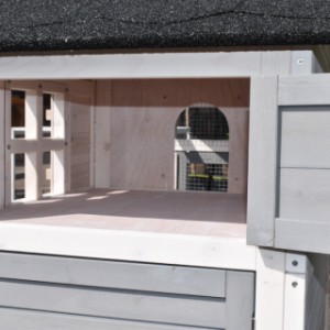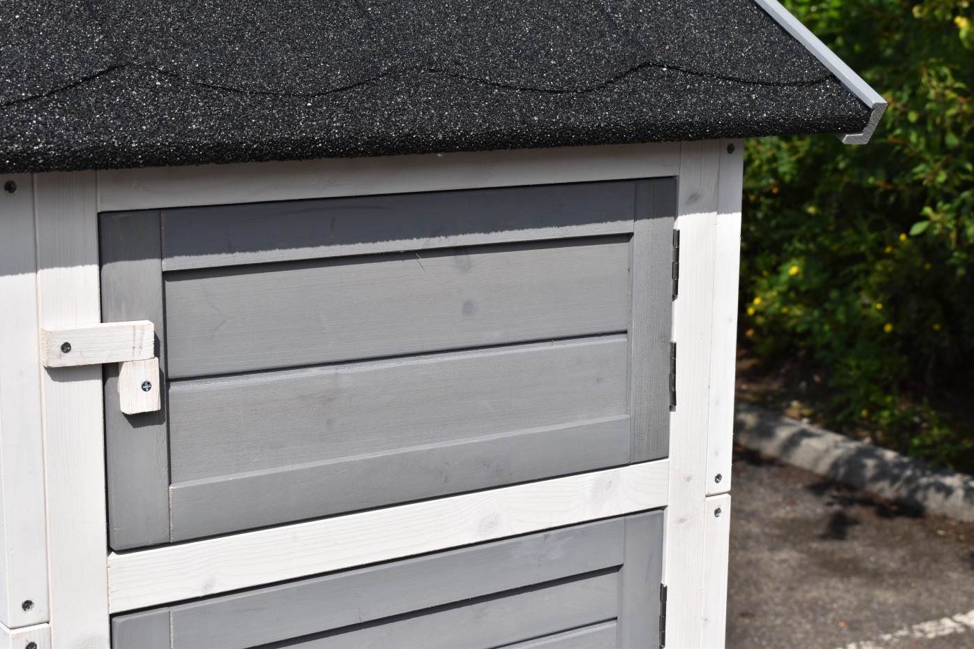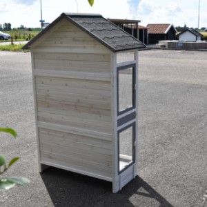 Le bois utilisé pour le loft est un produit naturel unique qu'a été produit dans le pays d'origine, après une sélection rigoureuse, dans une manière traditionelle. C'est caractéristique et unique à tous égards. Ce produit en bois a été un traitement manuel. Aucune pièce de bois ne possède la même forme, la même structure ou la même couleur, de sorte que les nuances de couleur sont inévitables, même dans un morceau de bois. Les fissures dues au vent, les craquelures, les imperfections et la présence de gros et de petits noeuds témoignent de leur origine et de leurs années de croissance. Les bosses sont généralement mises à jour manuellement avec du bois. Grâce à leur utilisation et à l’influence de la lumière, les nouveaux maisons pour animaux auront une couleur plus chaude au fil du temps. Les différences de couleur au modèle d'exposition sont donc possibles. L'enclos pour animaux est munie d'un fini antitache dans les couleurs comme sur la photo. Vous devez encore décaper le bois pour éviter les moisissures et la pourriture. Vous pouvez facilement commander des taches directement.