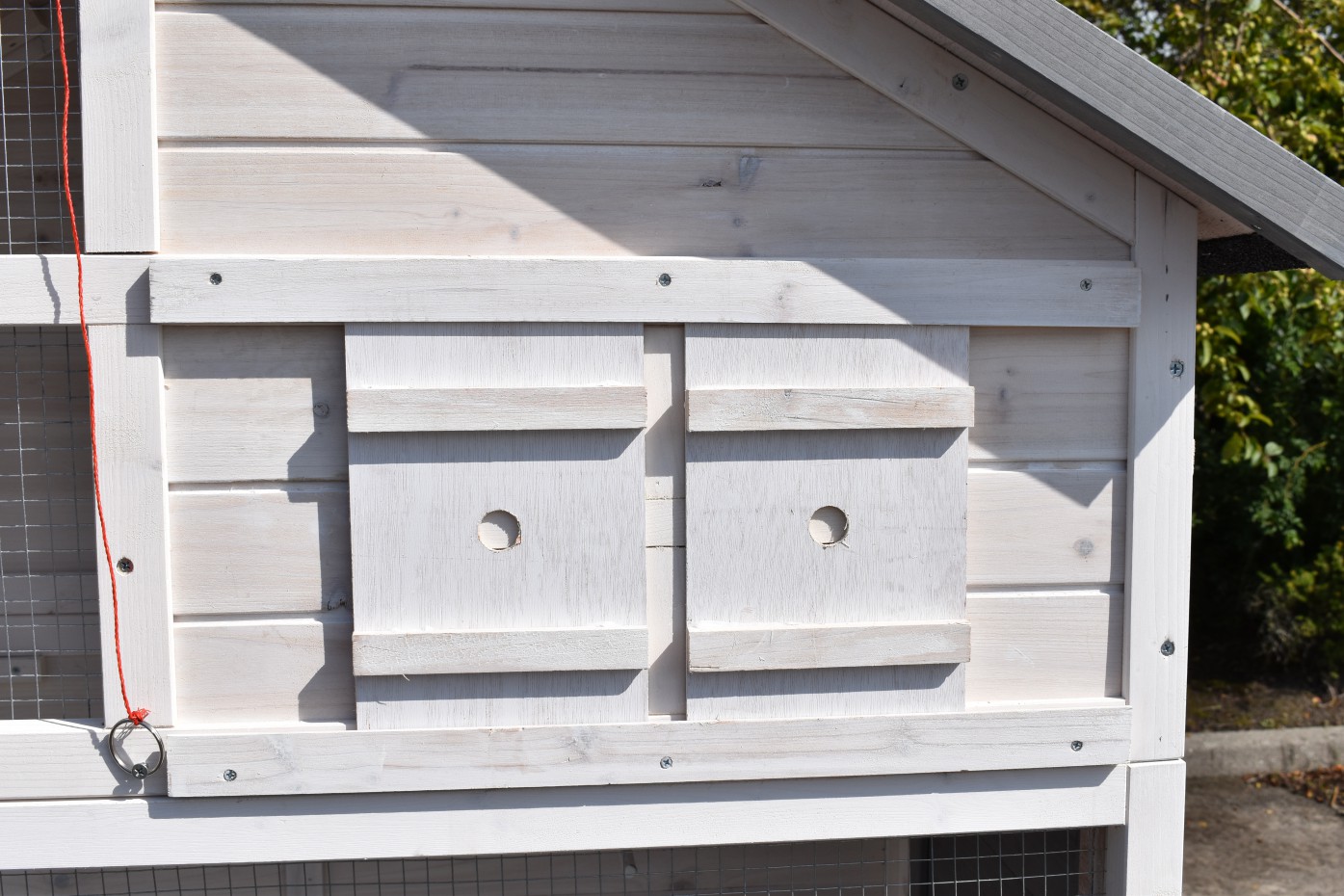 - Si ce n'est pas dans un endroit abrité, nous vous conseillons d'ancrer le clapier / poulailler