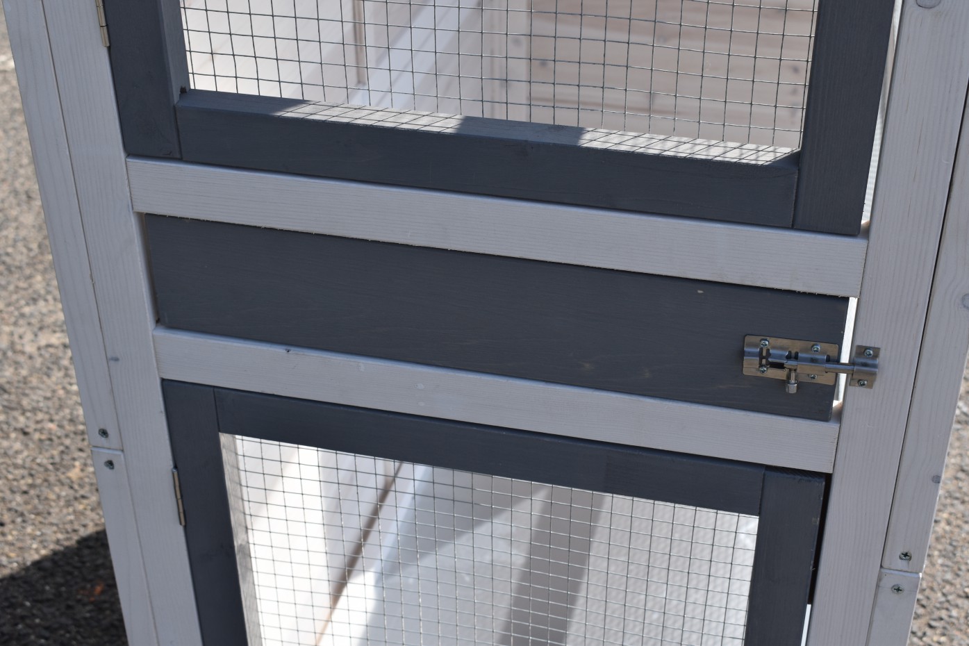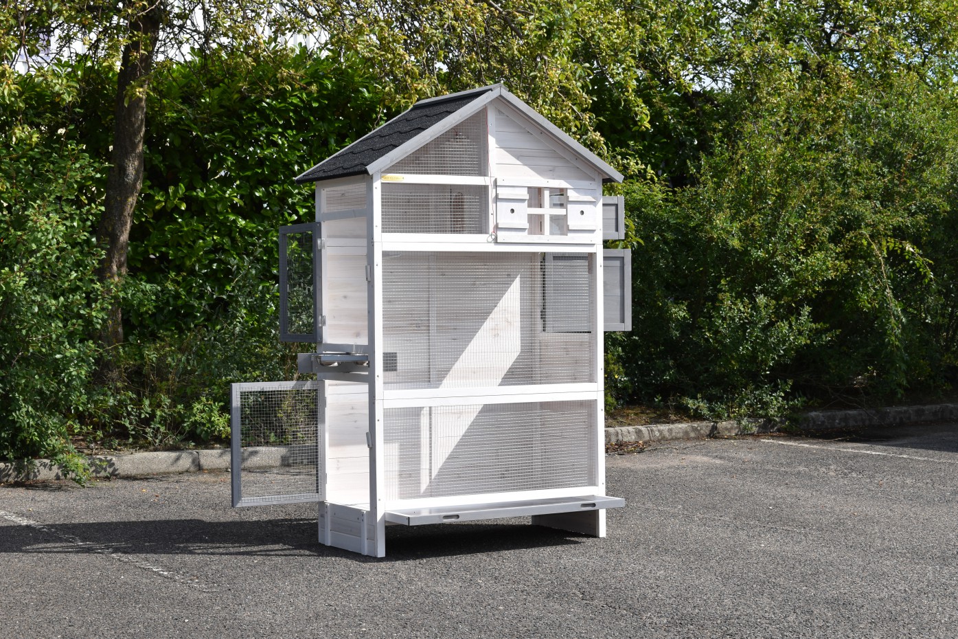 - Cette volière est équipée de portes spacieuses pour une accessibilité optimale