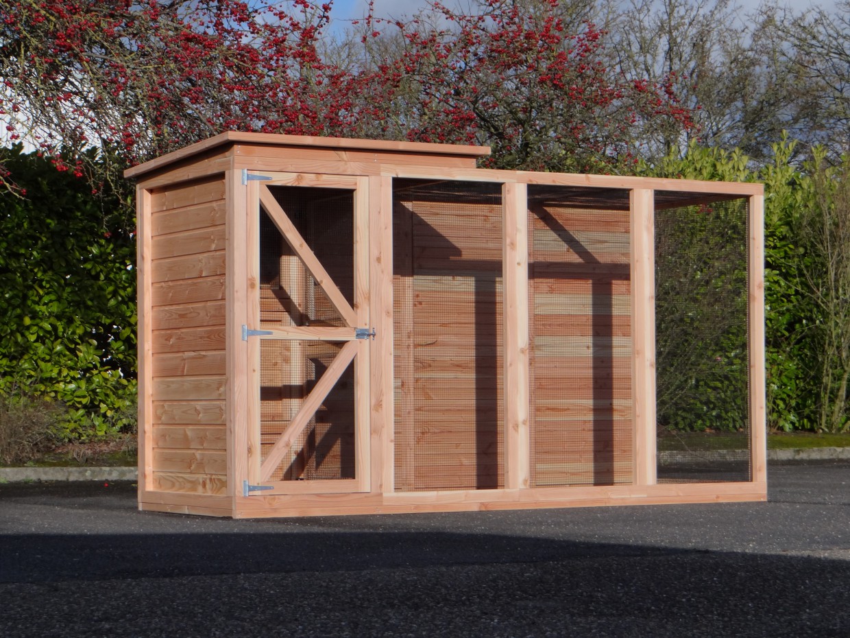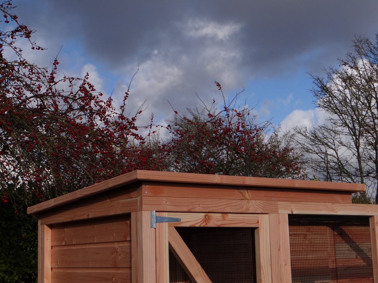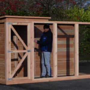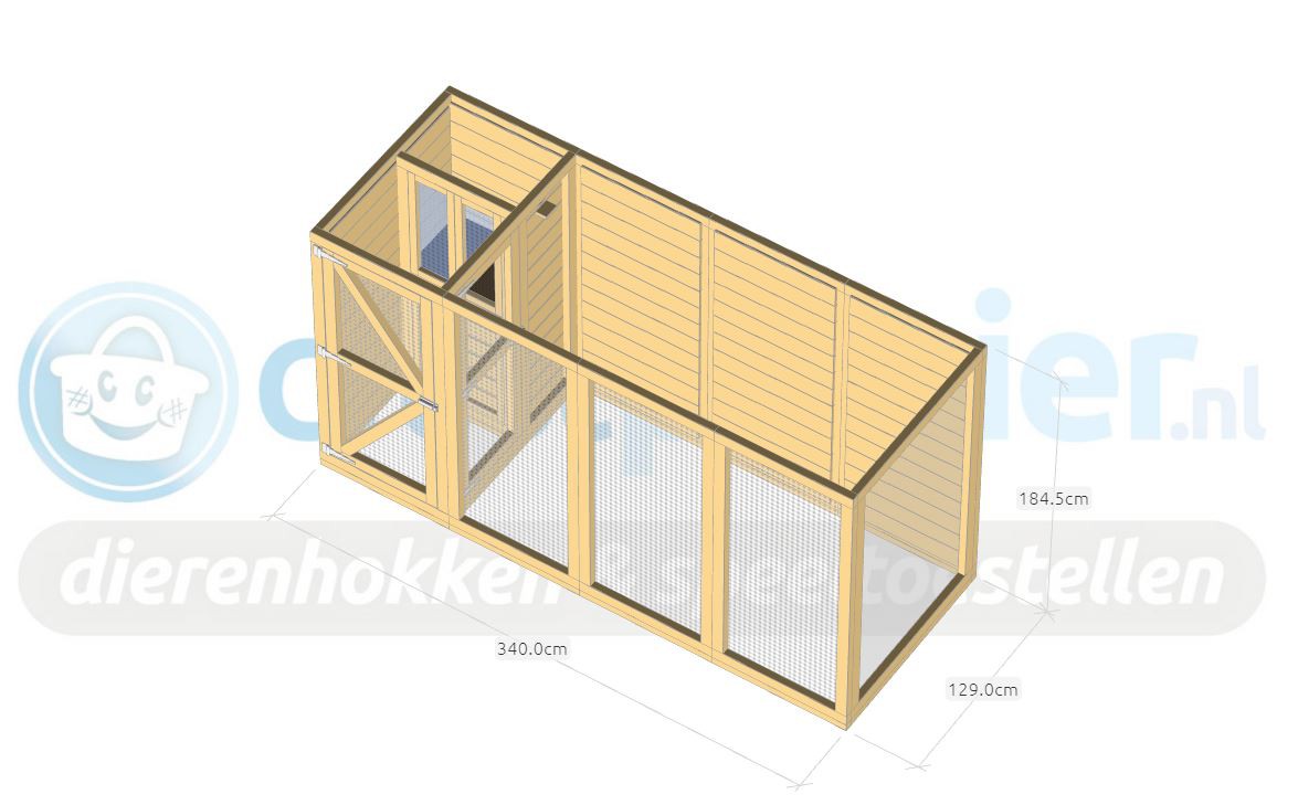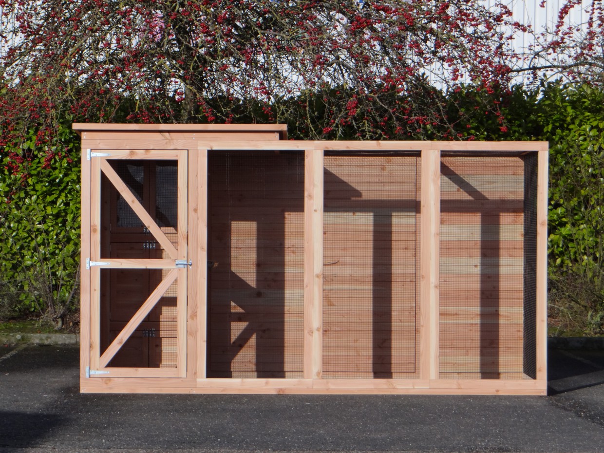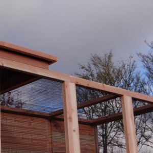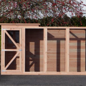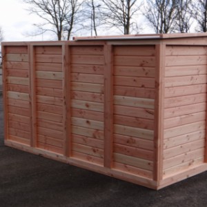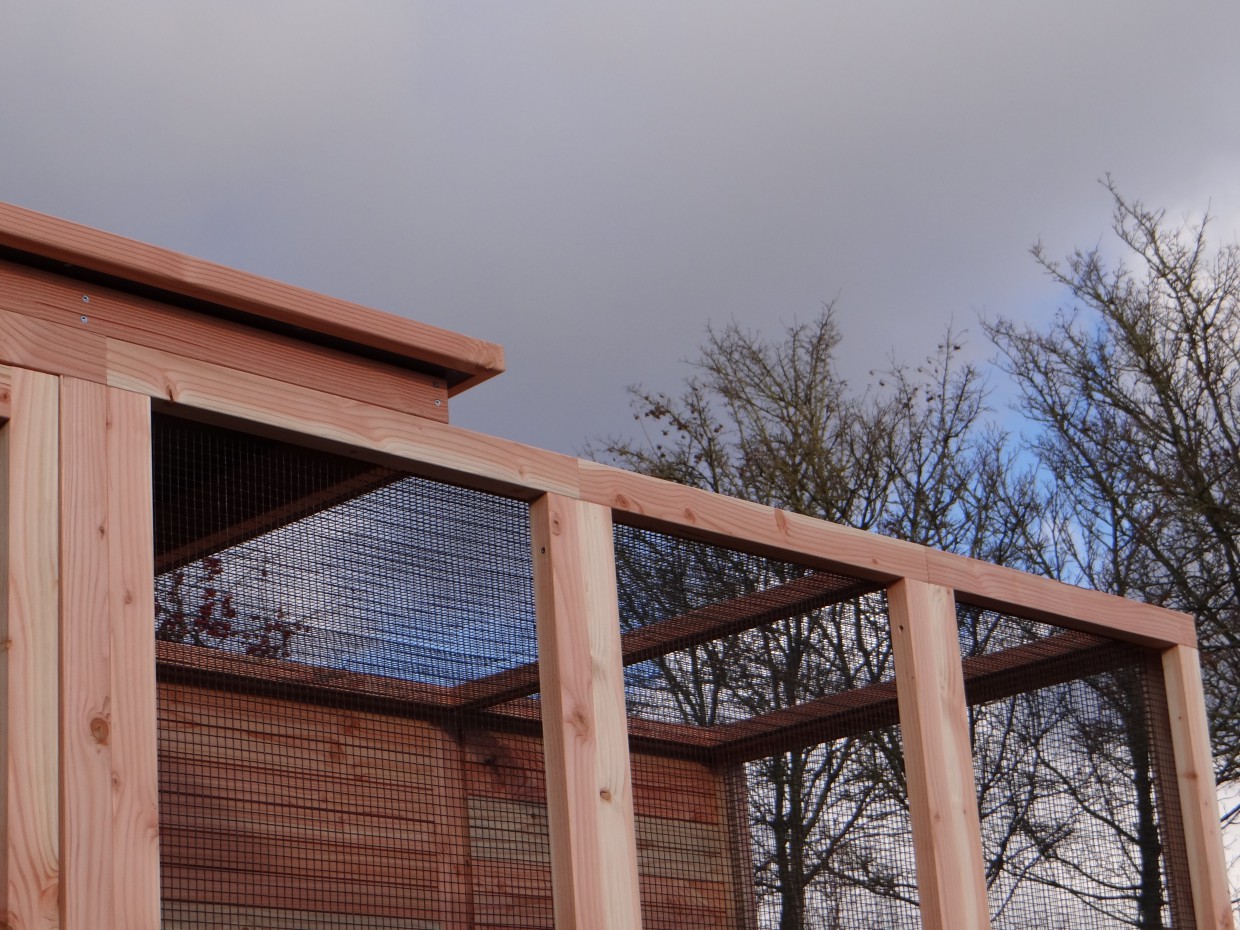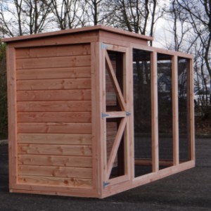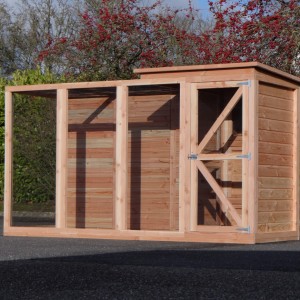 Cette volière est une belle volière durable, en bois de Douglasie. La volière contient beaucoup de mailles ainsi que vous pouvez l'utiliser pour des oiseaux tropiques aussi! Très pratique est le sas de la volière. Avec cette volière, vous êtes sûr que vous avez une bonne maison pour vos oiseax!