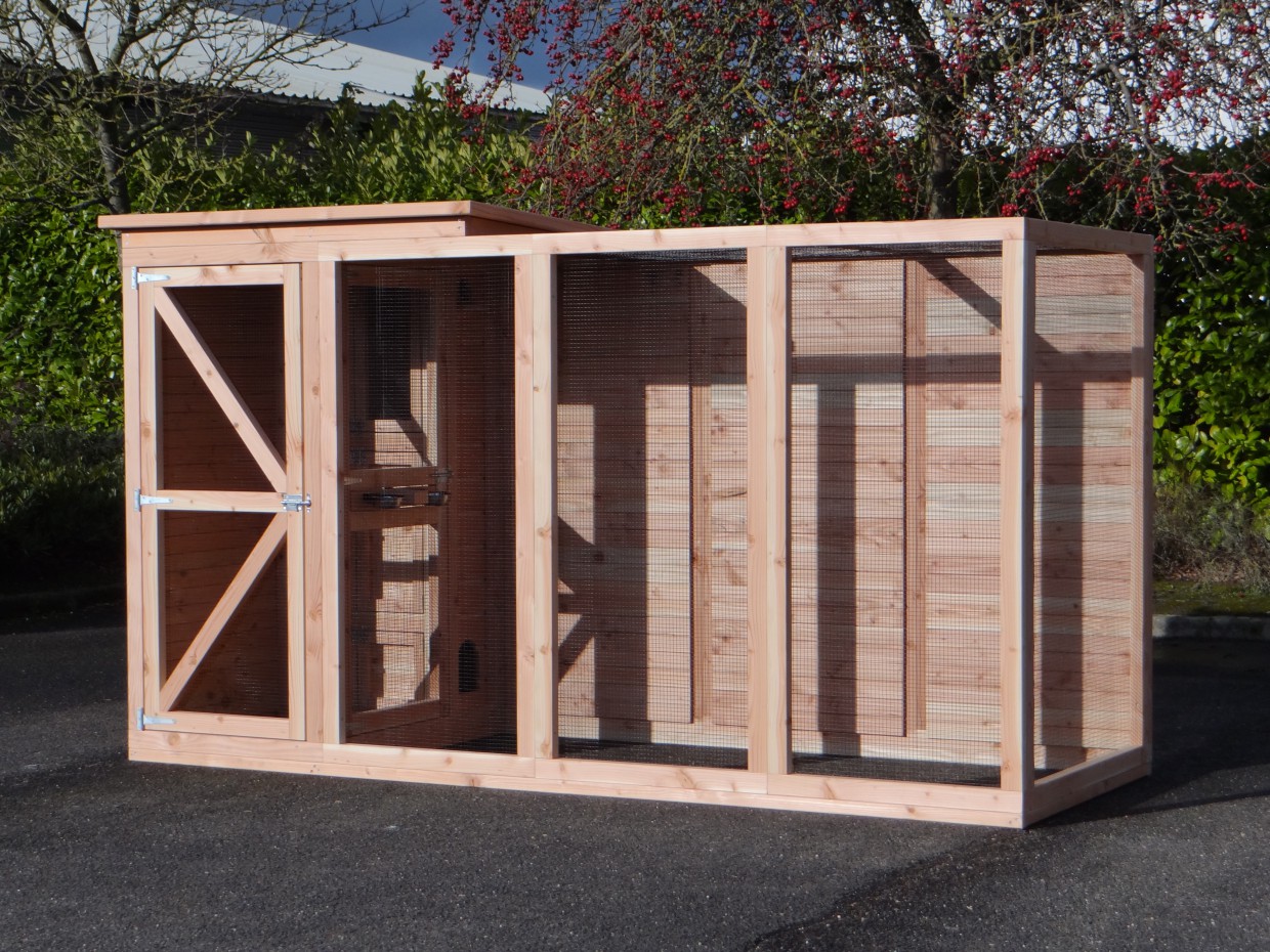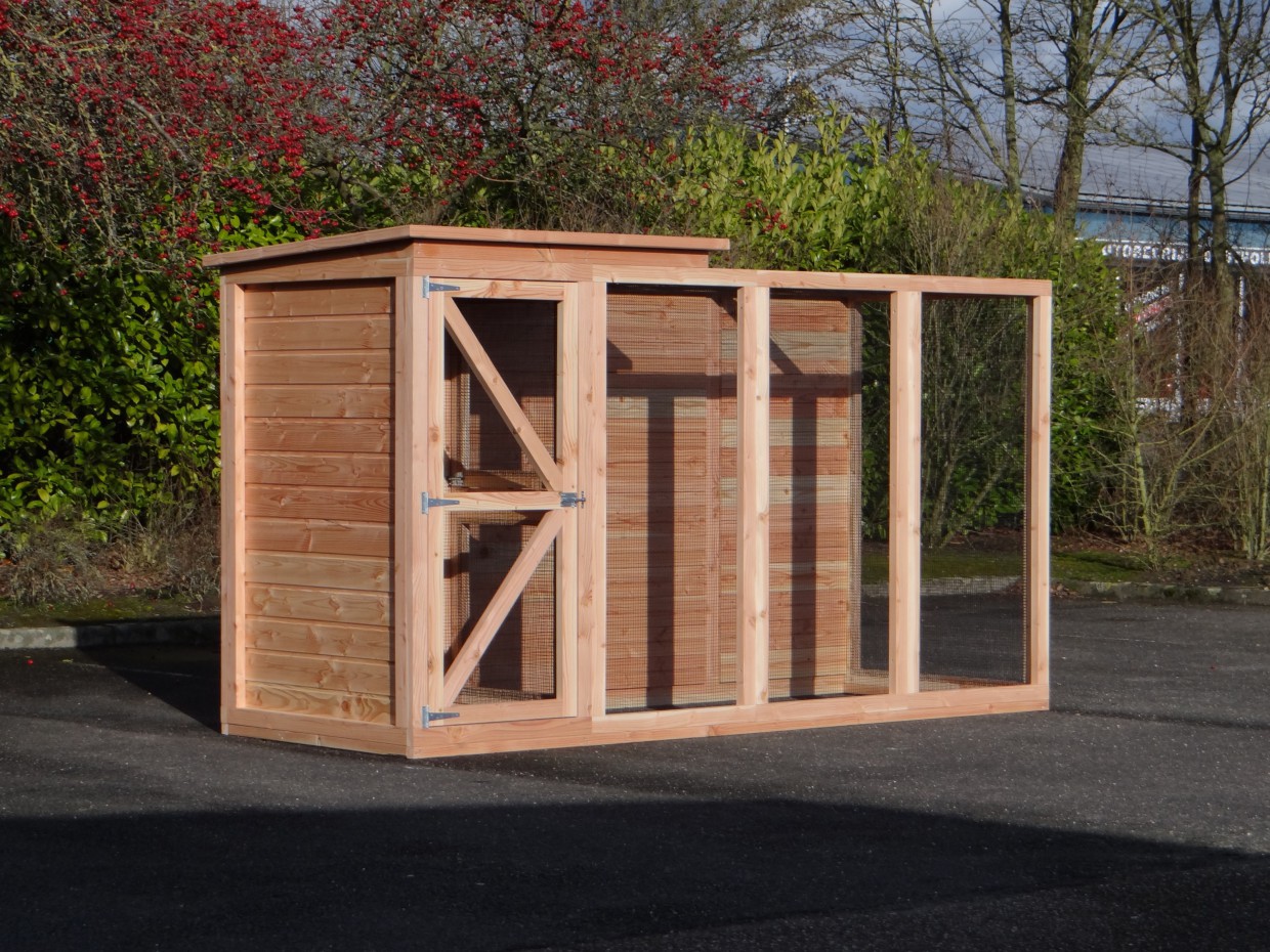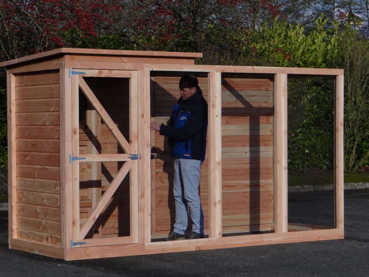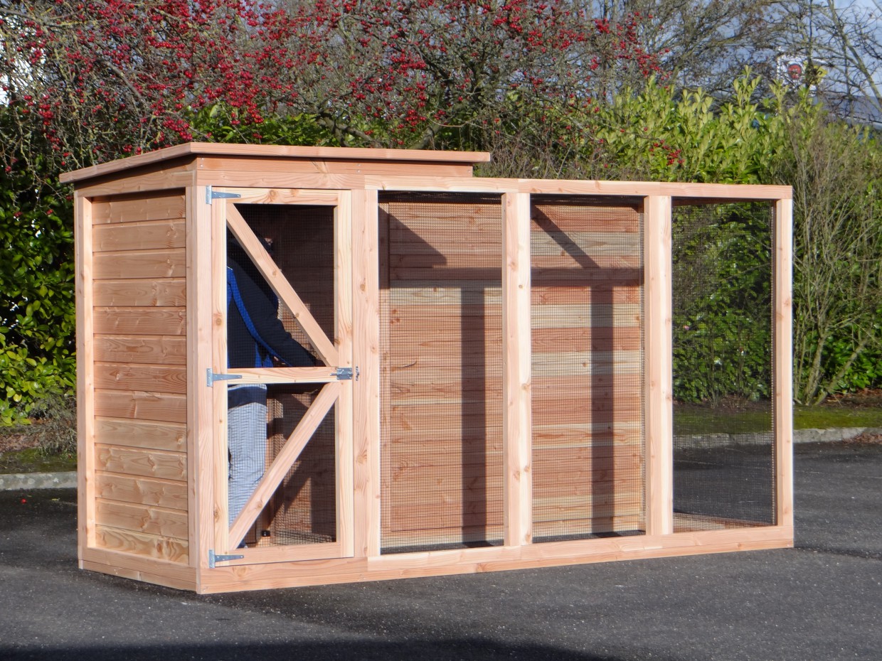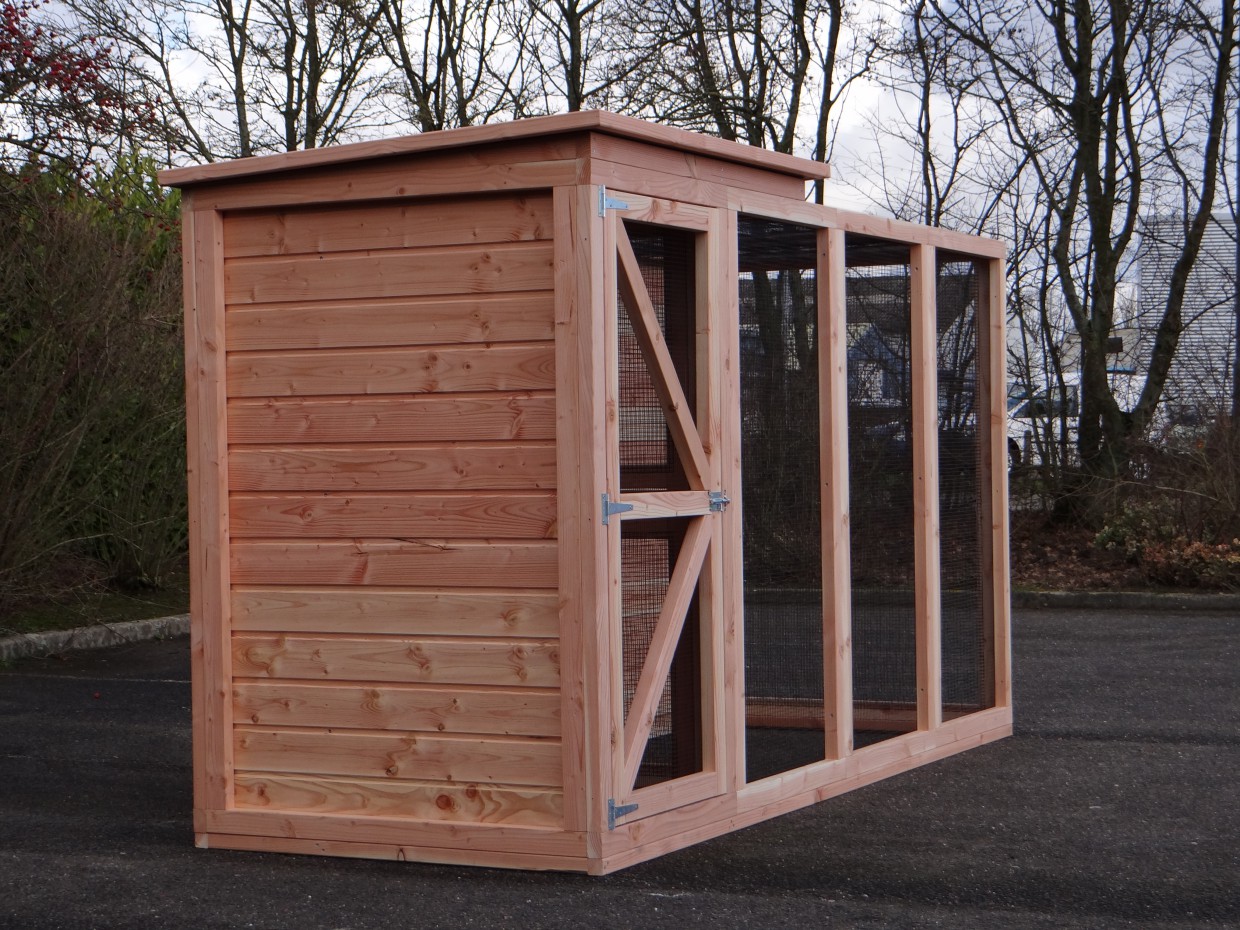 Cette volière est une belle volière durable, en bois de Douglasie. La volière contient beaucoup de mailles ainsi que vous pouvez l'utiliser pour des oiseaux tropiques aussi! Très pratique est le sas de la volière. Avec cette volière, vous êtes sûr que vous avez une bonne maison pour vos oiseax!