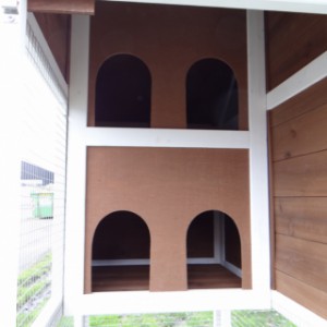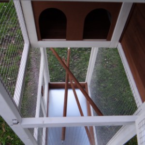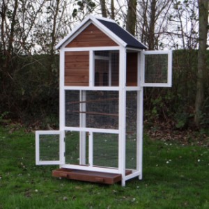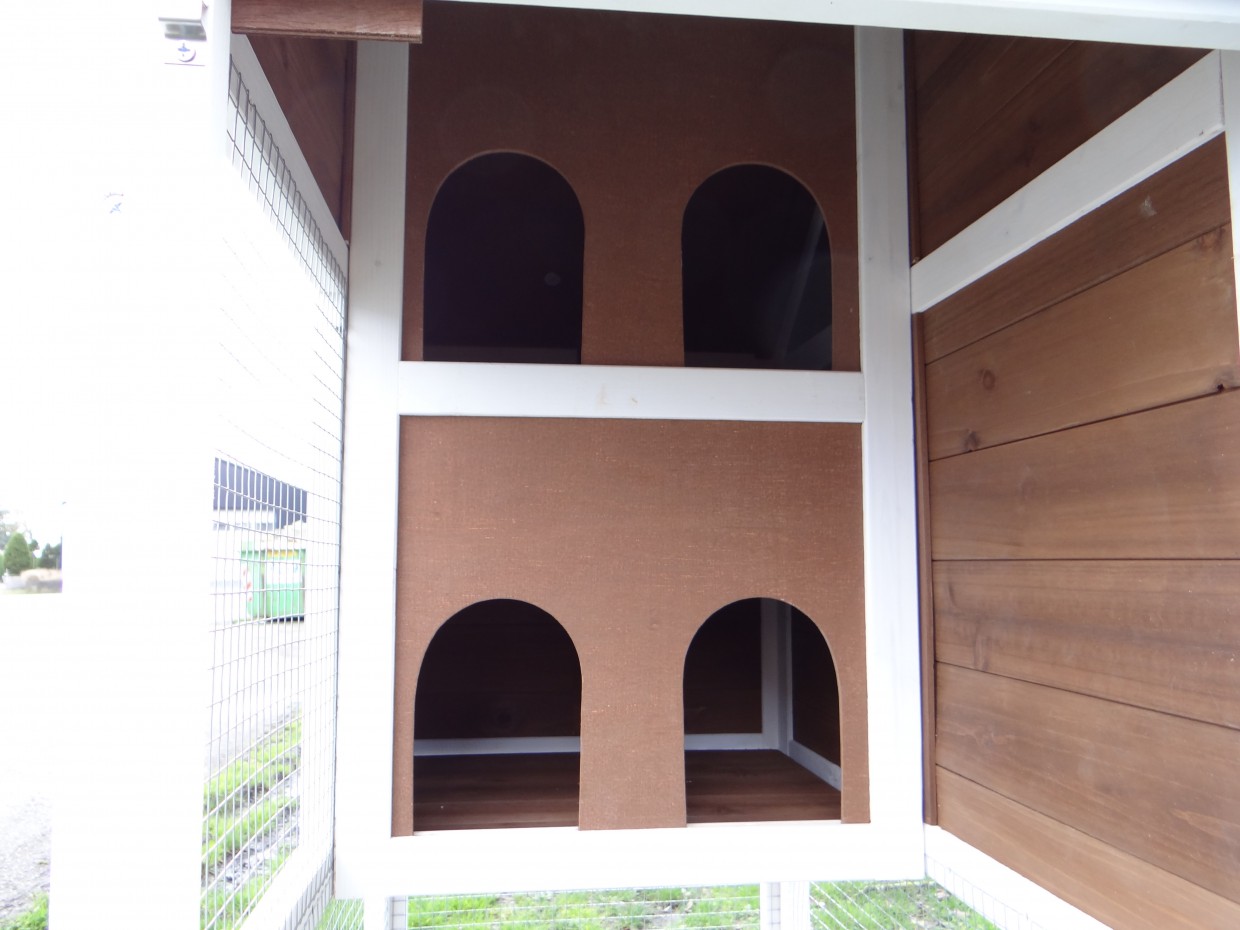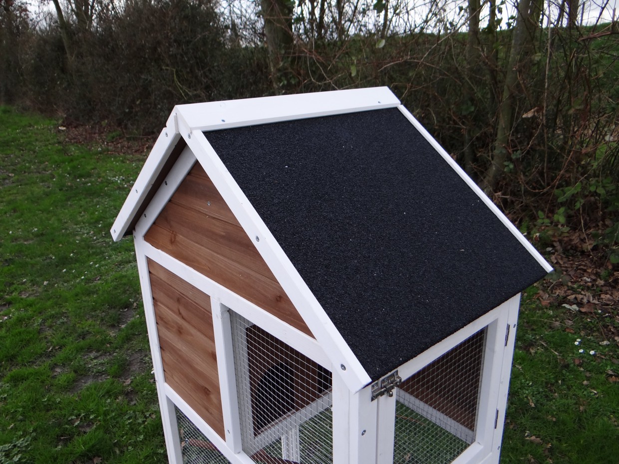 Le bois utilisé pour le loft est un produit naturel unique qu'a été produit dans le pays d'origine, après une sélection rigoureuse, dans une manière traditionelle. C'est caractéristique et unique à tous égards. Ce produit en bois a été un traitement manuel. Aucune pièce de bois ne possède la même forme, la même structure ou la même couleur, de sorte que les nuances de couleur sont inévitables, même dans un morceau de bois. Les fissures dues au vent, les craquelures, les imperfections et la présence de gros et de petits noeuds témoignent de leur origine et de leurs années de croissance. Les bosses sont généralement mises à jour manuellement avec du bois. Grâce à leur utilisation et à l’influence de la lumière, les nouveaux maisons pour animaux auront une couleur plus chaude au fil du temps. Les différences de couleur au modèle d'exposition sont donc possibles. L'enclos pour animaux est munie d'un fini antitache dans les couleurs comme sur la photo. Vous devez encore décaper le bois pour éviter les moisissures et la pourriture. Vous pouvez facilement commander des taches directement.