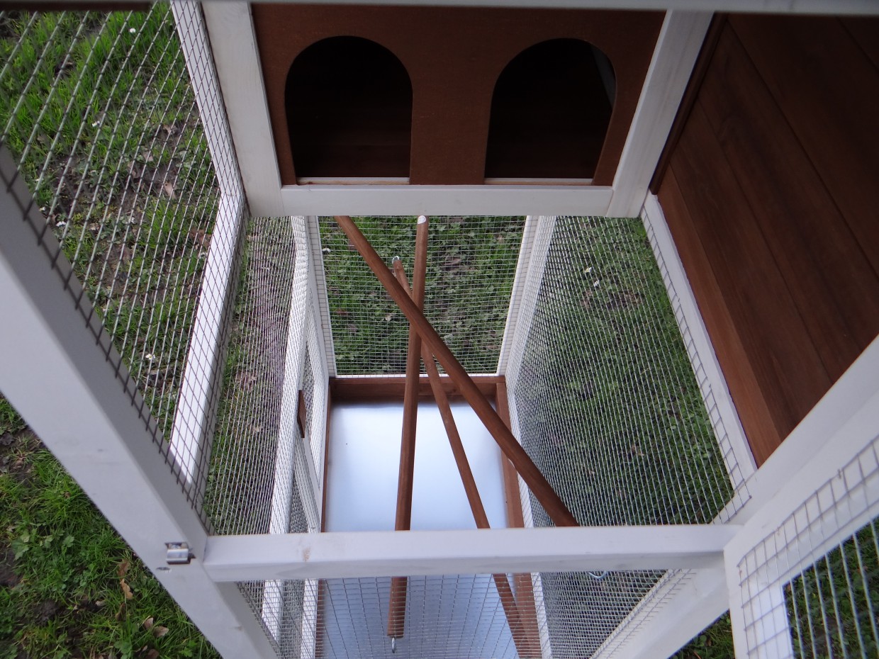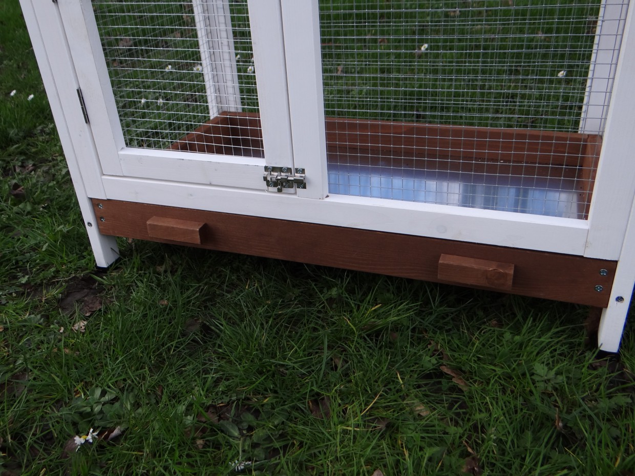 Il est conseillé de traiter périodiquement les charnières et les serrures avec un spray en silicone ou un spray pour serrures pour éviter la rouille et la corrosion. Si l'animal n'est pas dans un endroit abrité, nous vous conseillons d'ancrer l'enclos.