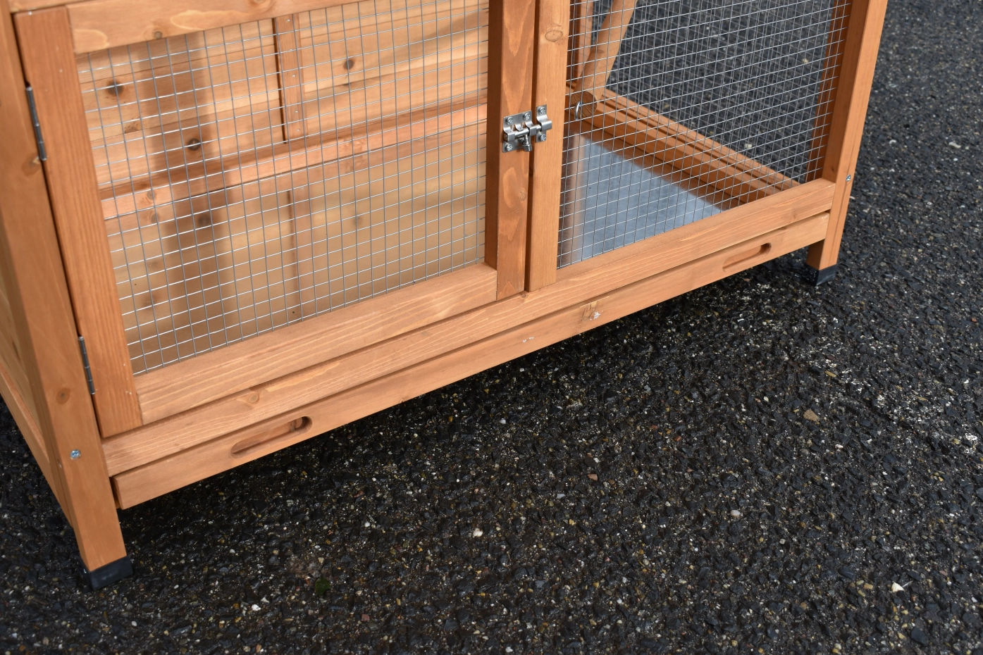 Il est conseillé de traiter périodiquement les charnières et les serrures avec un spray en silicone ou un spray pour serrures pour éviter la rouille et la corrosion. Si l'animal n'est pas dans un endroit abrité, nous vous conseillons d'ancrer l'enclos.