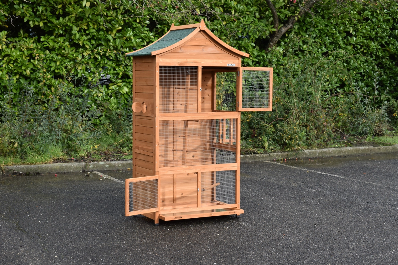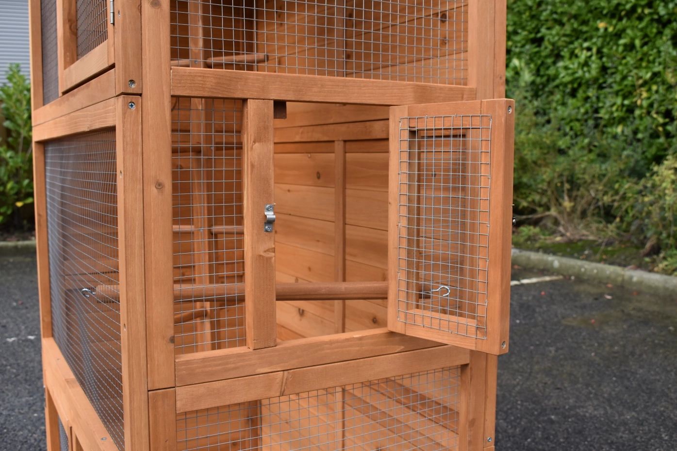 - Cette volière est équipée de portes pratiques