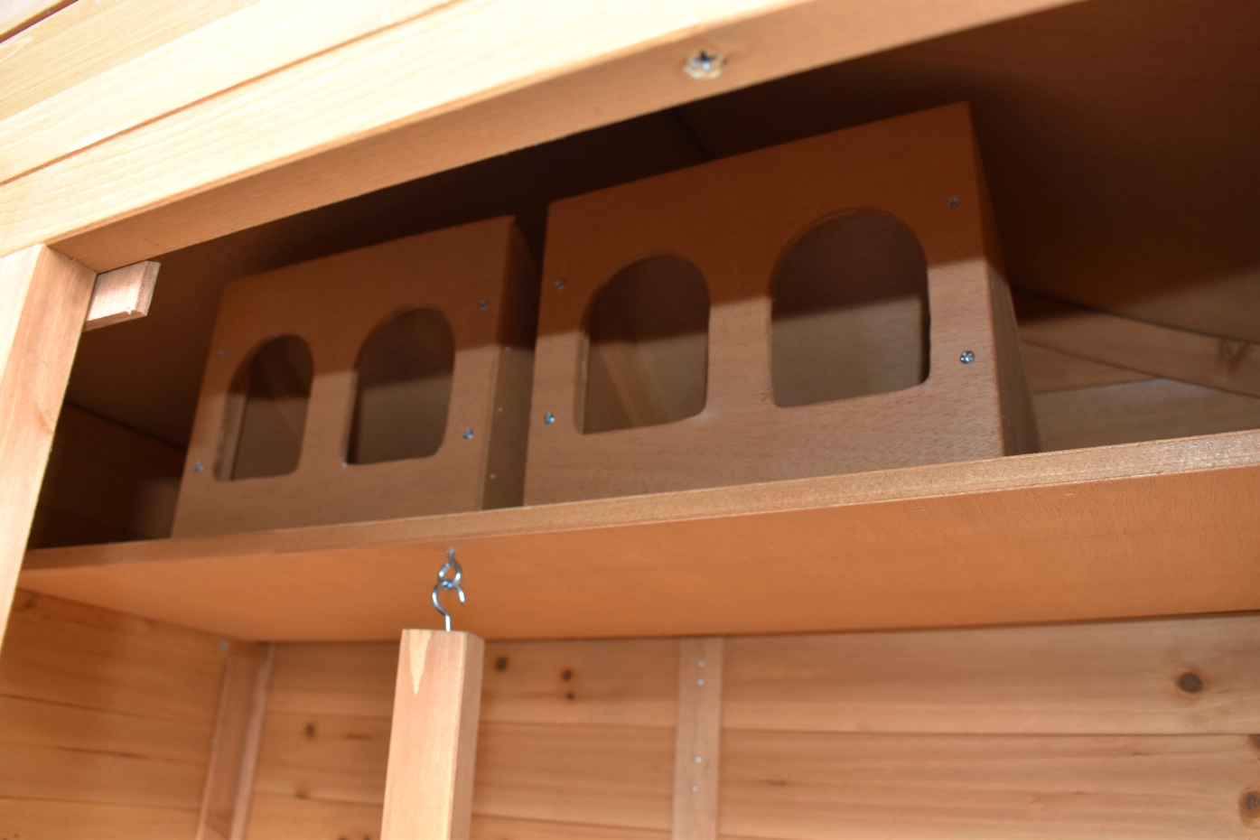 - Cette volière est équipé des nichoirs