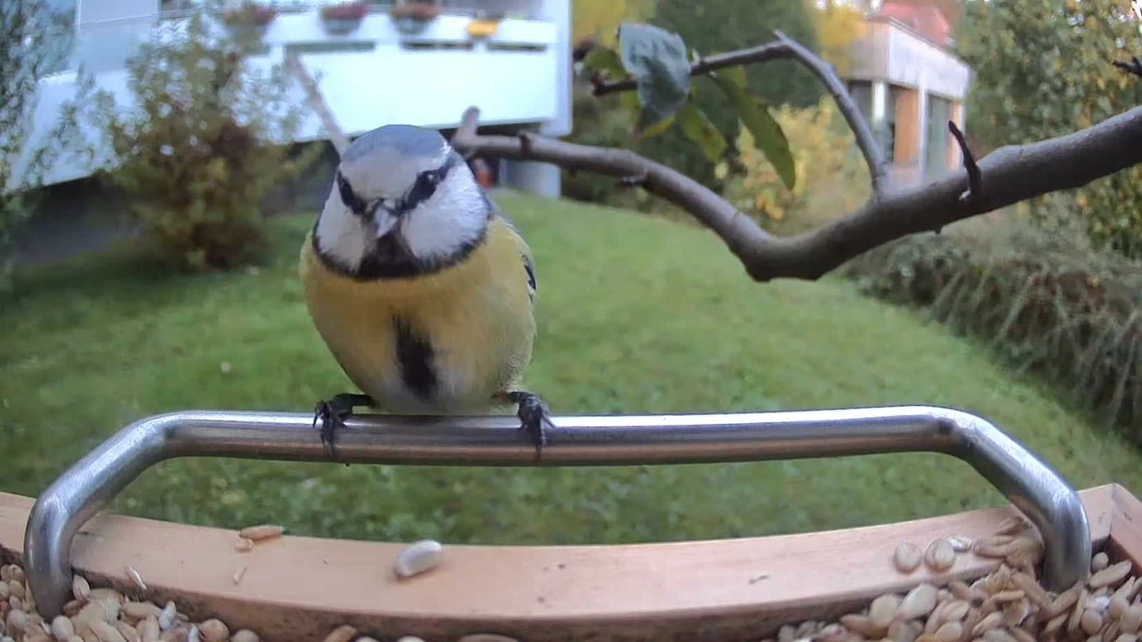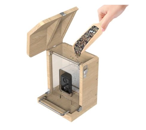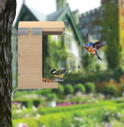 Mangeoire à oiseaux avec caméra et panneau solaire