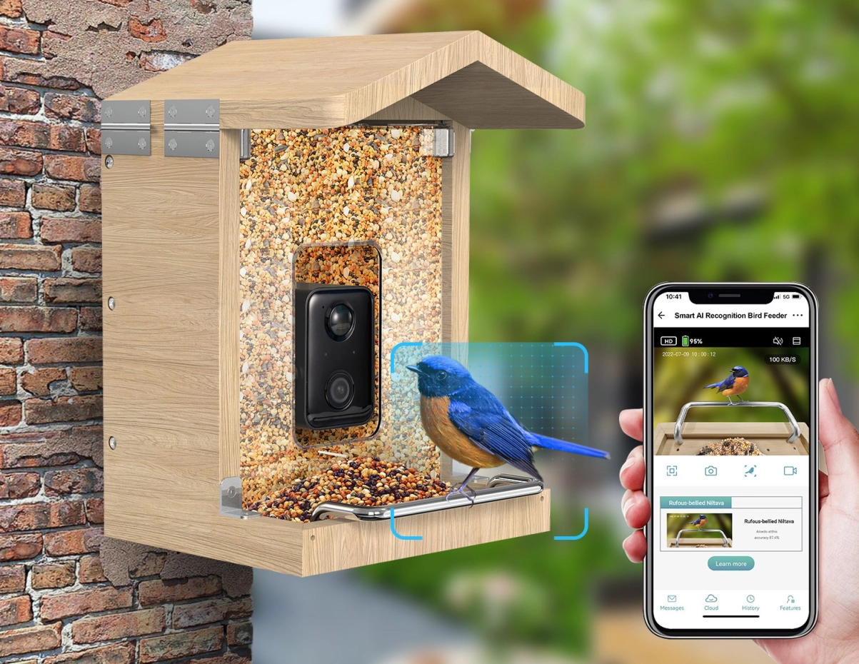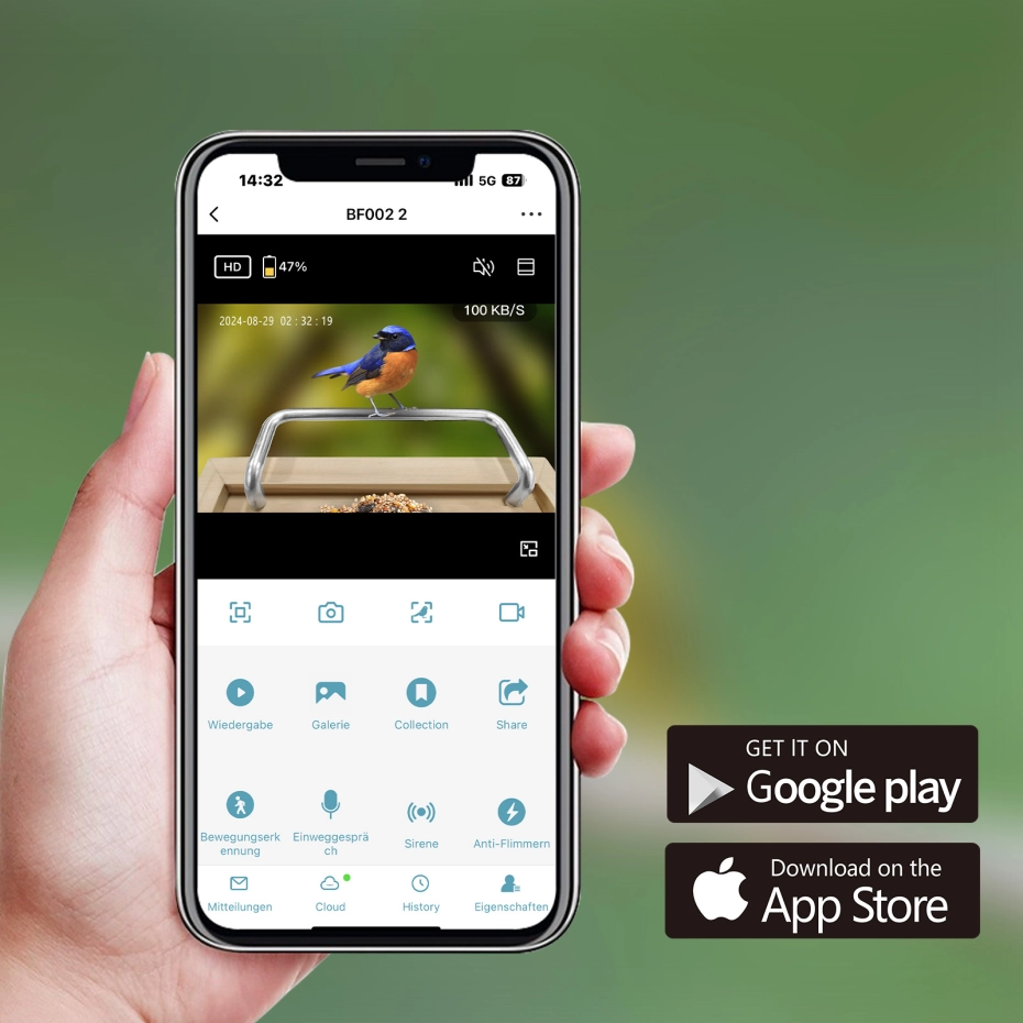 Cette mangeoire intelligente avec caméra vous permet d'observer les oiseaux de votre jardin de près grâce à une connexion en direct sur votre smartphone via l'application gratuite. Équipée d'un panneau solaire et d'une batterie rechargeable, cette mangeoire est à la fois écologique et facile à utiliser. Avec des fonctionnalités telles que la vision nocturne, la reconnaissance d'oiseaux par IA, un microphone intégré et un espace de stockage jusqu'à 64 Go sur une carte SD, vous pouvez enregistrer et partager le comportement des oiseaux jour et nuit. Assurez-vous d'une connexion Wi-Fi pour visionner les photos et vidéos.
